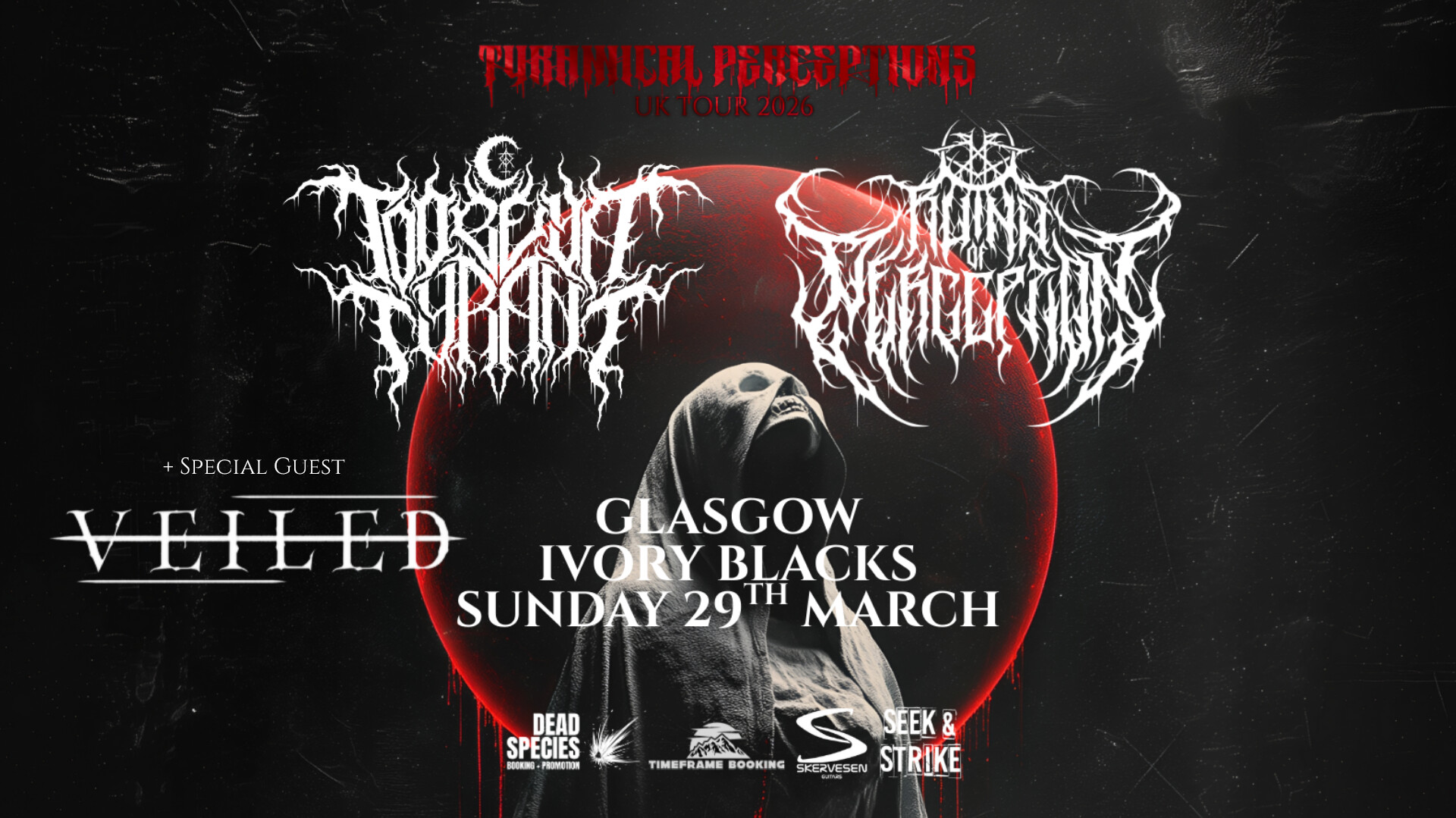 GLASGOW: Dead Species UK and Timeframe Booking present: TO OBEY A TYRANT and RUINS OF PERCEPTION - cruising over the UK with a Deathcore display to be sickened by. The most impressive and intense bands in the genre join forces after a huge European tour to bring 9 dates of pure evil to the United Kingdom. Support at this date comes from Veiled.