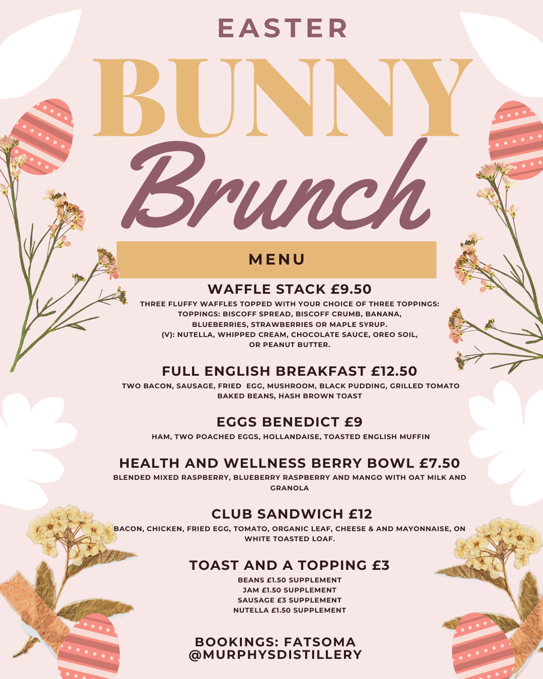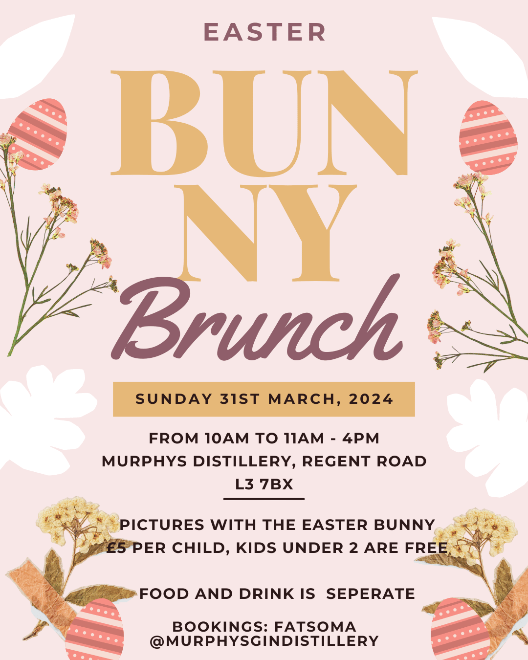 He's bringing Easter eggs and gifts, Pop down for brunch and visit the Easter Bunny!