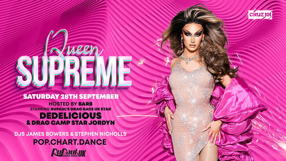 The inimitable RuPaul's Drag Race UK star DedeLicious returns to Cruz 101 for another HUGE Saturday night Queen Supreme hosted by the one and only Barb. Every time Dede takes to the main stage here at Cruz she blows the roof off! So we can't wait to have her back!