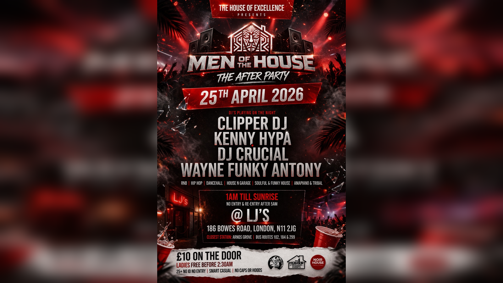 Location: LJ’s, 186 Bowes Road, London, N11 2JG