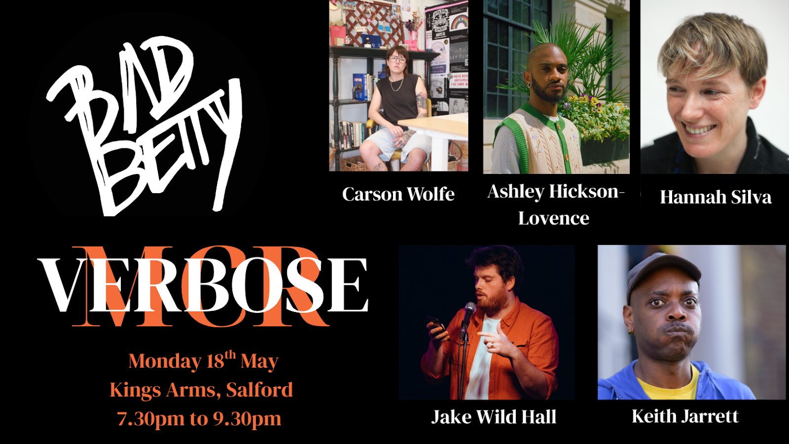 One of Manchester’s longest running spoken word events, Verbose, returns on Monday 18th May 2026 at the Kings Arms for a very special collaboration with Bad Betty Press.