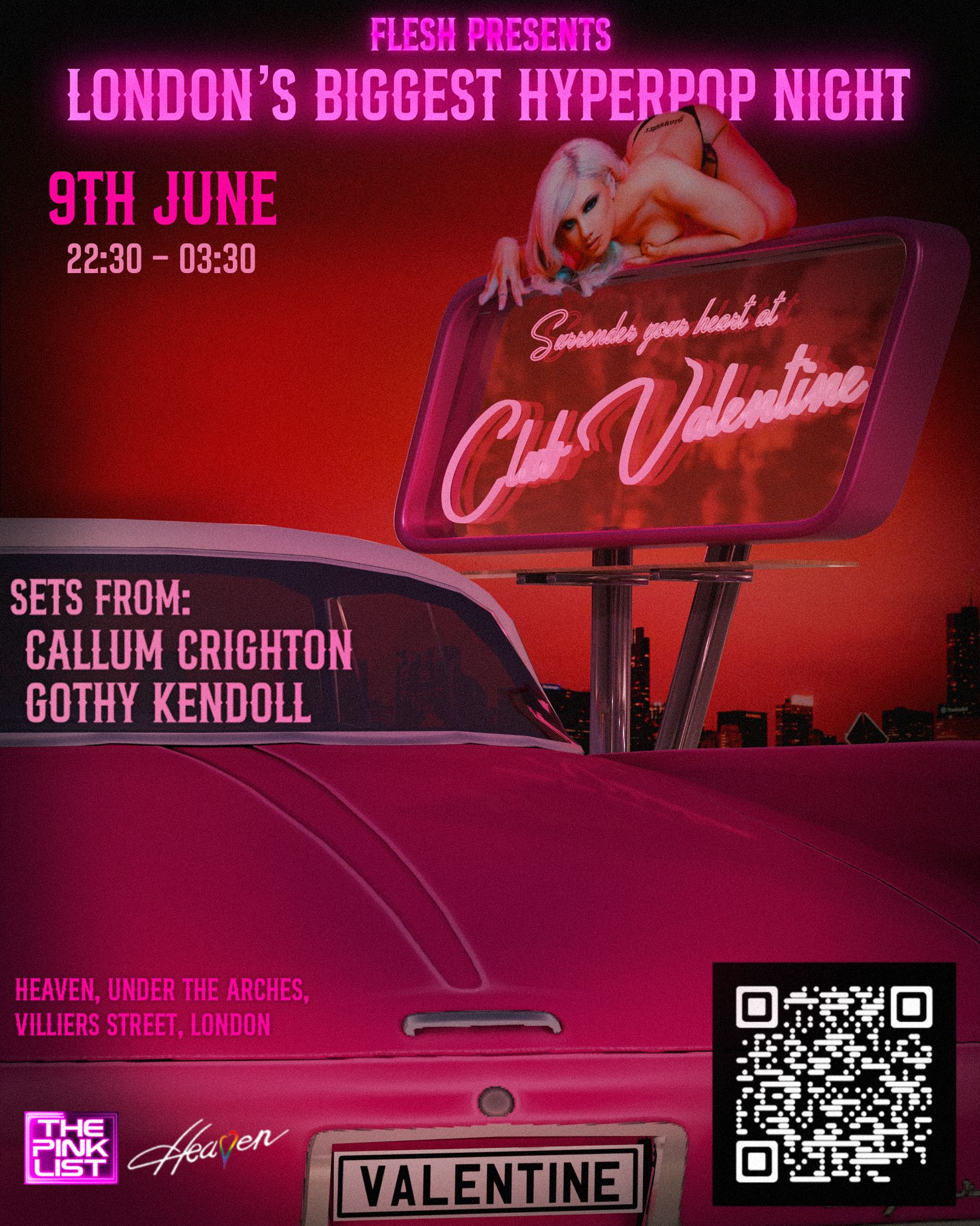 Our DJs Callum Crighton and Drag Race’s Gothy Kendoll will be playing only the best hyperpop, PC and slut pop bangers from artists such as Ayesha Erotica, A.G. Cook, Danny L Harle, SOPHIE, Chase Icon, Brooke Candy, Bree Runway, COBRAH, Only Fire, 100 Gecs, Grimes, Hannah Diamond, Tove Lo, Ashnikko, Dorian Electra, and many, many more.