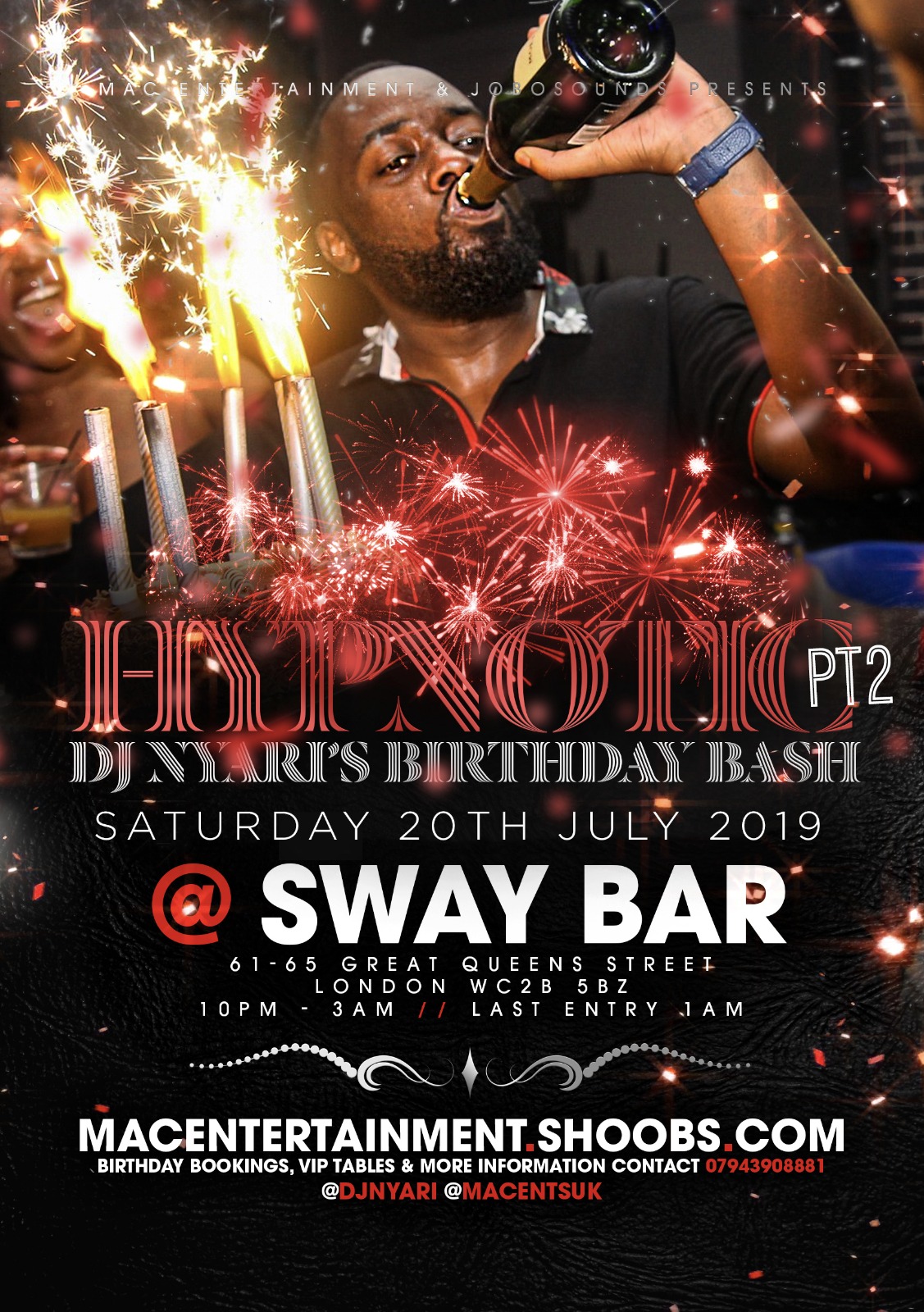 SATURDAY 20TH JULY 2019 @ SWAY BAR 61-65 GREAT QUEENS STREET LONDON WC2B 5BZ