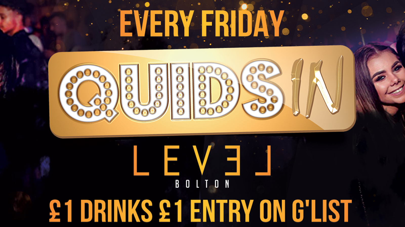 QUIDS IN EVERY FRIDAY AT LEVEL NIGHTCLUB BOLTON