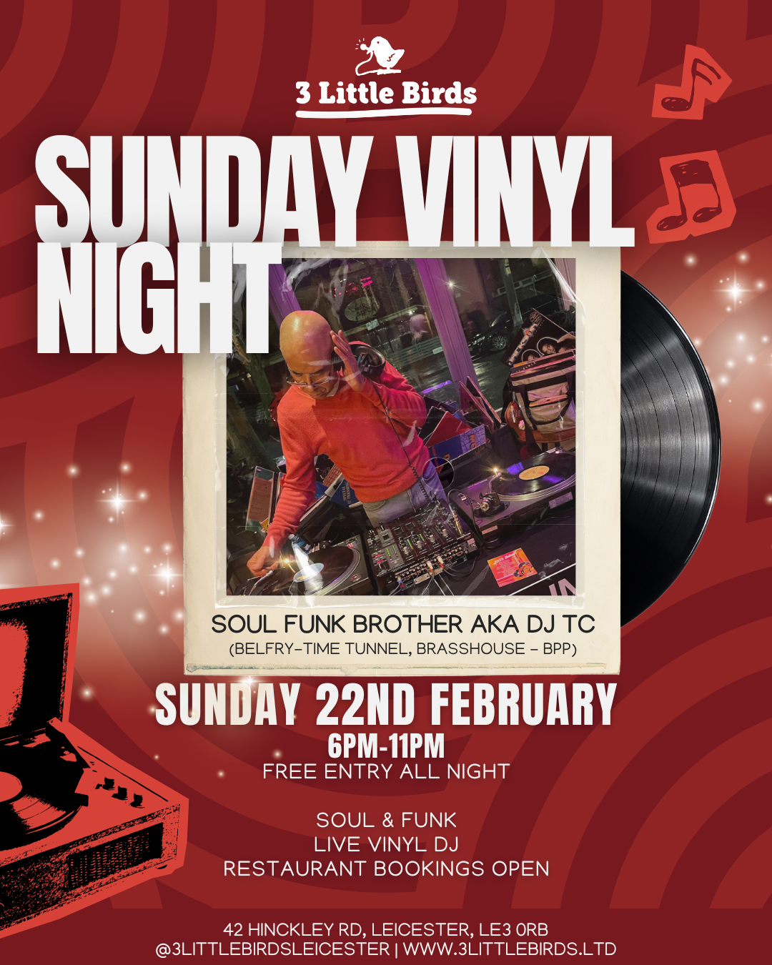 Head down to 3 Little Birds for a full night of Soul & Funk β€” strictly vinyl only ✨