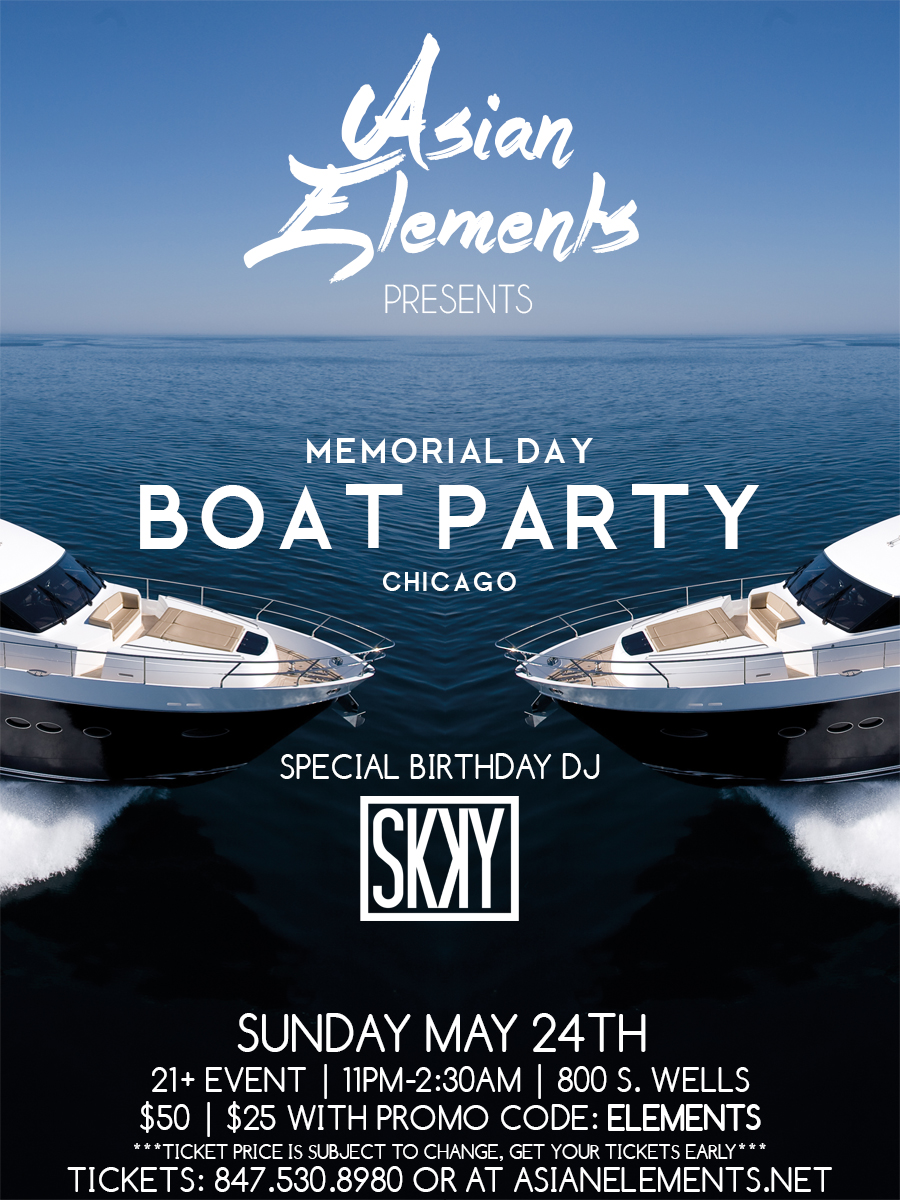 For Memorial Sunday we will host a Boat Cruise Party with DJs and dancing! DJ Skyy Birthday Set! Celebrating Asian Heritage Month!