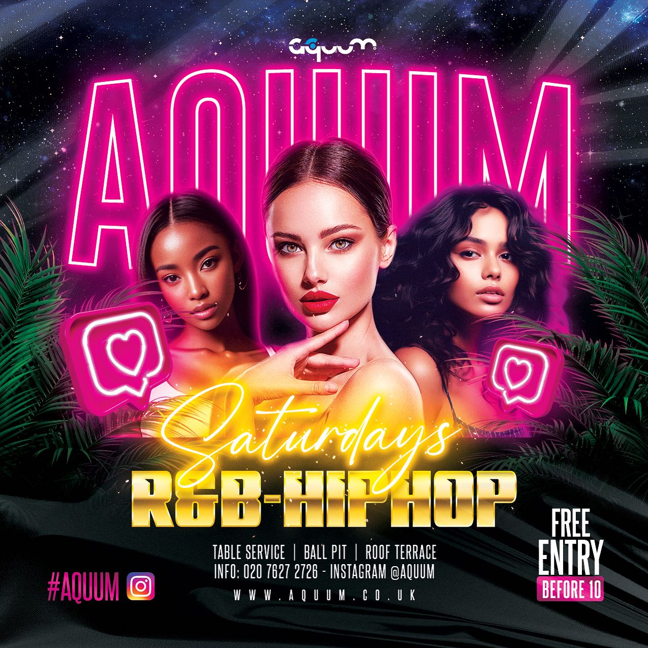 Saturday nights at Aquum elevate the weekend with a unique blend of culinary and musical delights. The evening can begin with an optional indulgence in the Bottomless Night Brunch experience, where guests enjoy a two course meal complemented with bottomless Prosecco, Porn Star Martinis & Margaritas. As dinner winds down, the nightlife heats up with resident DJs playing an array of genres including commercial HipHop & RnB until 3:30am. The venue's chic, multi-level space offers the perfect backdrop for both lively dancing and intimate conversations, making Aquum a top choice for those looking to celebrate the weekend in style.