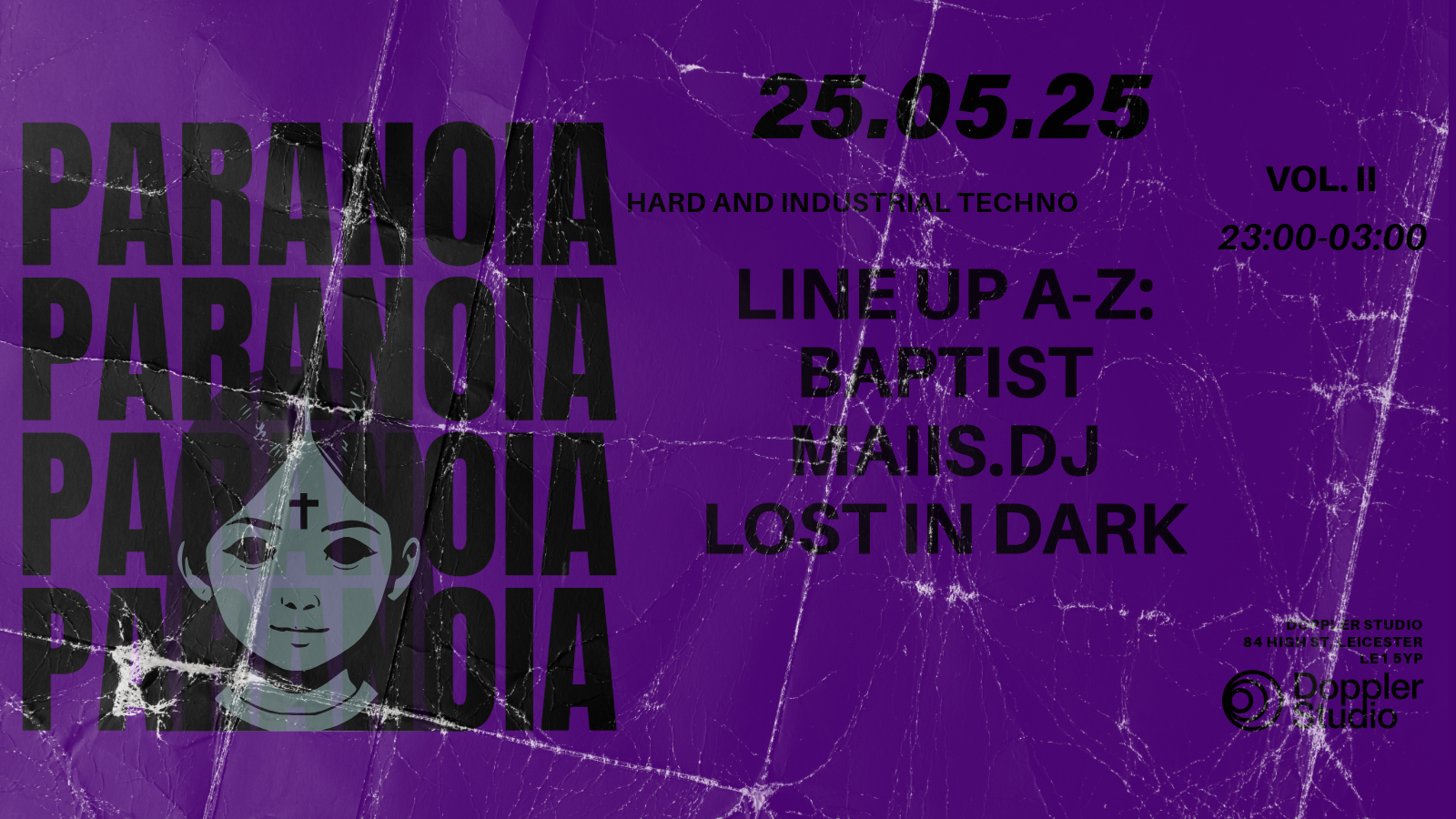 Step out of the shadows and embrace the chaos! PARANOIA is back for a second time. This is a night dedicated to hard techno and industrial taste, pulsating in the heart of Leicester.