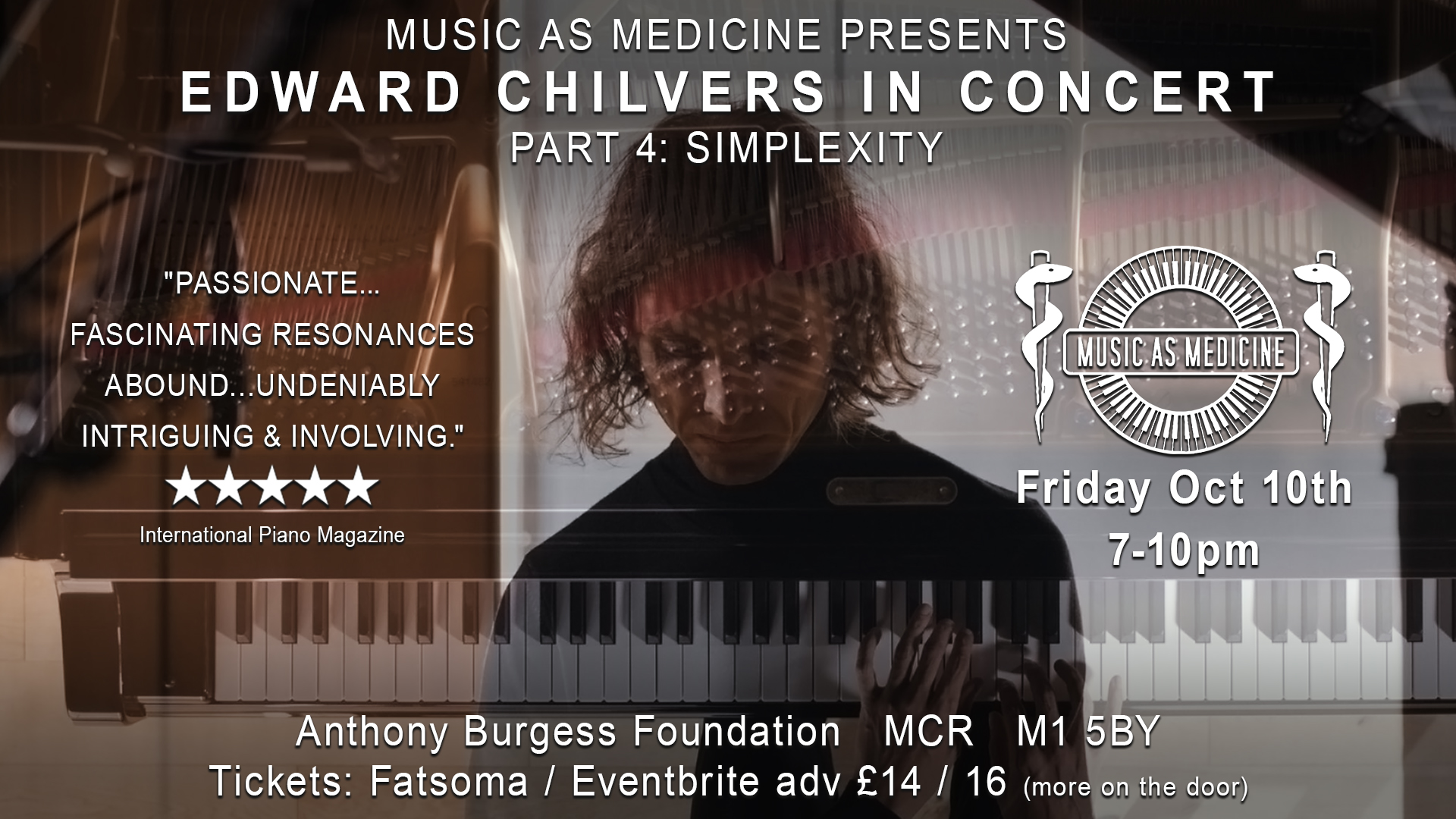 Chilvers will be performing on Anthony Burgess's own Bosendorfer piano.