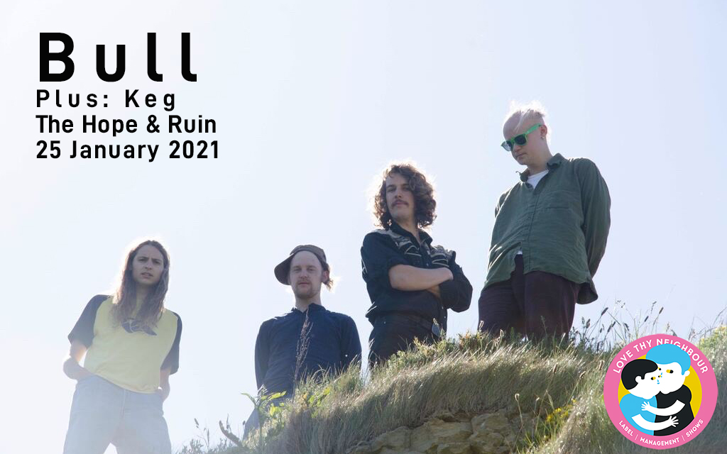 Formed in 2011 by vocalist and songwriter Tom Beer and guitarist Dan Lucas, Bull’s mission is simply to make the music they wanted to listen to, inspired by their 90’s heroes such as Pavement, Yo La Tengo and the Pixies. The rest of the band came together through a mix of friendships and happenstance. Drummer Tom Gabbatiss joined after he and Tom jammed together in bars while they were back-packing around Thailand, and Kai West had previously used to jump up on stage with the band and “Bez” (verb meaning to dance badly while intoxicated) before they eventually let him play bass.