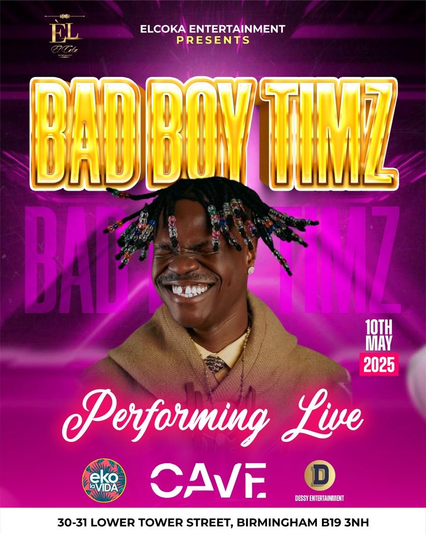 Get ready, Birmingham! Elcoka Entertainment present an electrifying night featuring Bad boy Timz , live in performance. Known for his unique sound and captivating performances, Bad boy Timz is set to bring the energy and vibes to the stage.