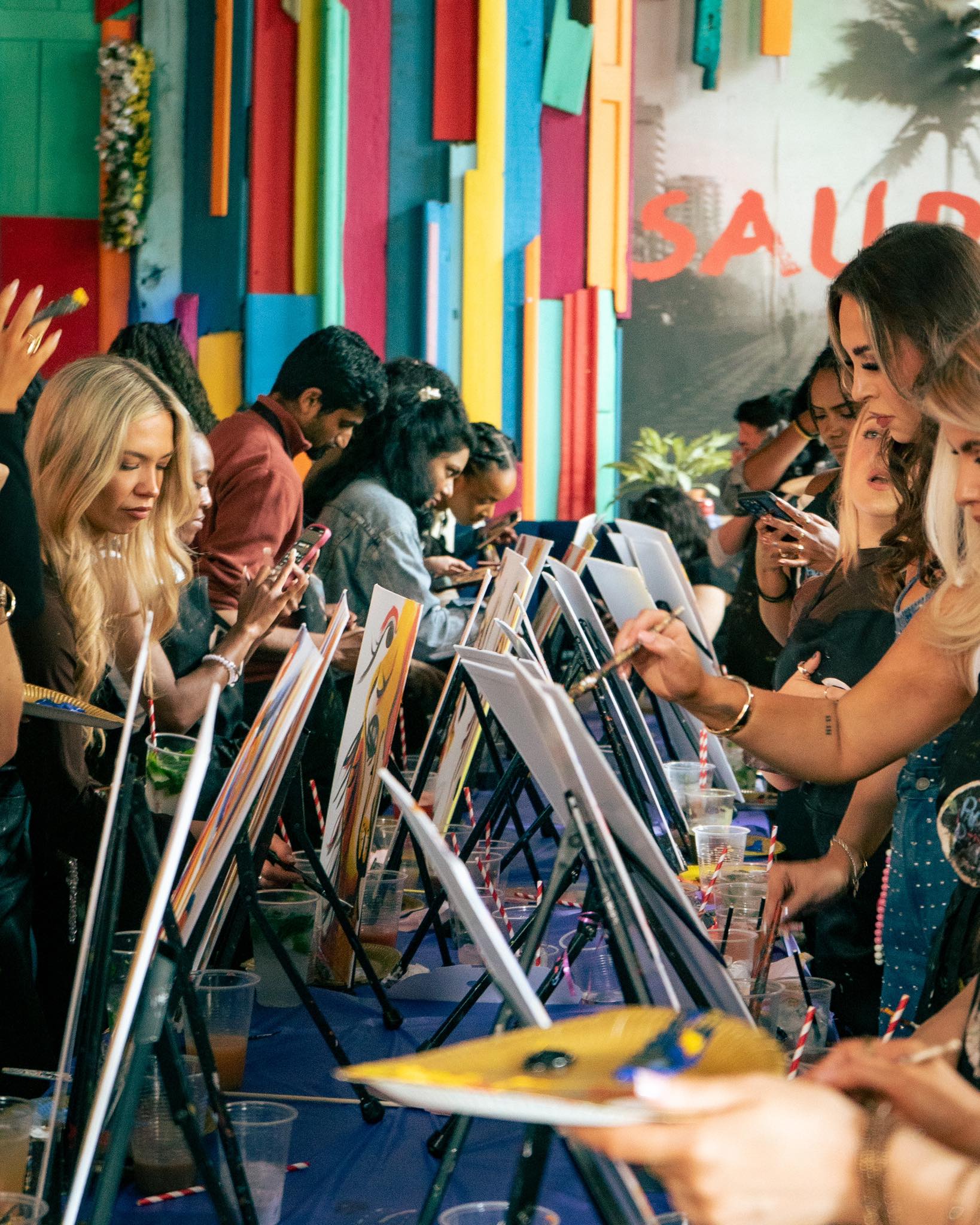 • A paintbrush in one hand 🖌️, your favourite drink in the other🍹, add a DJ spinning 90s RnB, hip-hop, club classics all night long! 🎶🔥 This isn't just a paint class...it’s a full-on party. Sip. Dance. Laugh. Paint. Repeat.