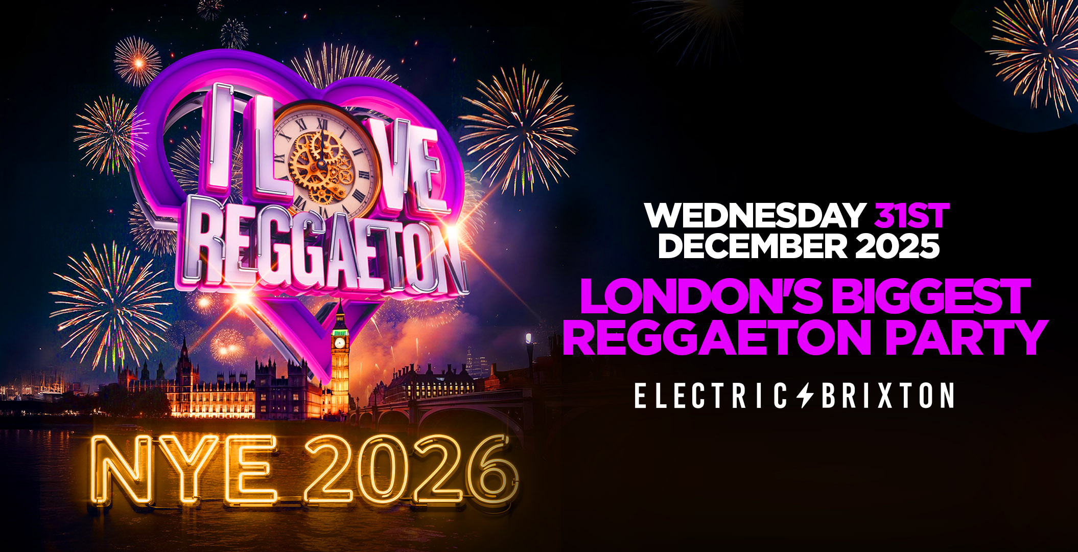 Join over 1800 Reggaeton lovers for an EPIC COUNTDOWN TO 2026 at the iconic Electric Brixton – the UK’s home of Reggaeton! 🎉🍾