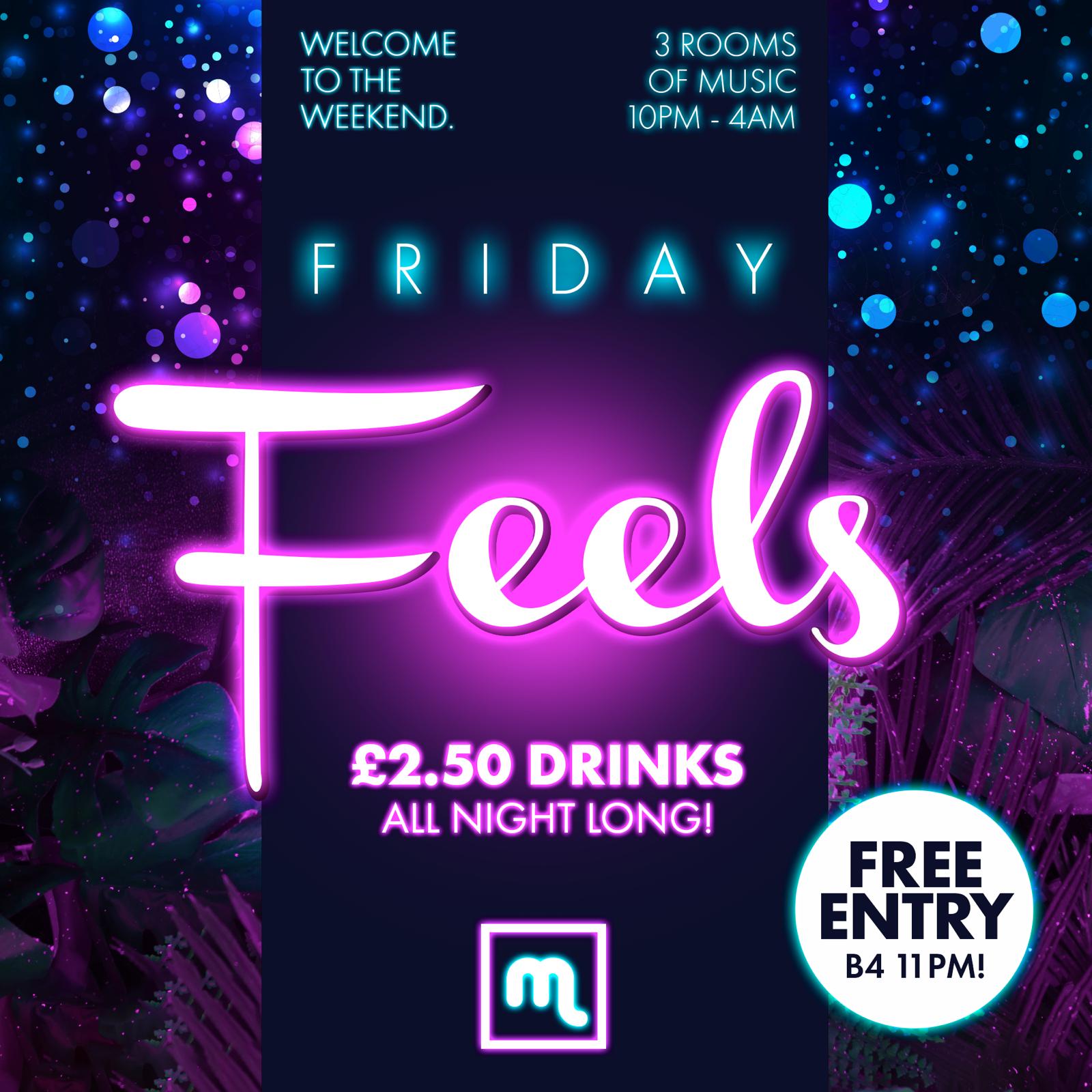 Free entry before 11pm, £2.50 drinks all night... it's FRIDAY FEELS!