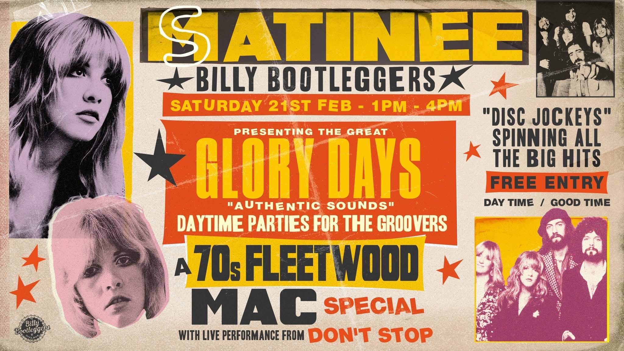 We're taking you back to the Glory Days of music with our Disc Jockeys spinning all the biggest and best 70s Fleetwood Mac hits!!