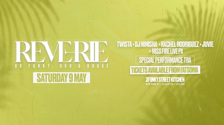 Introducing 'Reverie' a brand new outdoor daytime event bringing fresh energy to the scene. Join us for the launch on 9th May at 2Funky Street Kitchen for an afternoon/evening dedicated to the sounds of UK Funky, House and UK Garage.