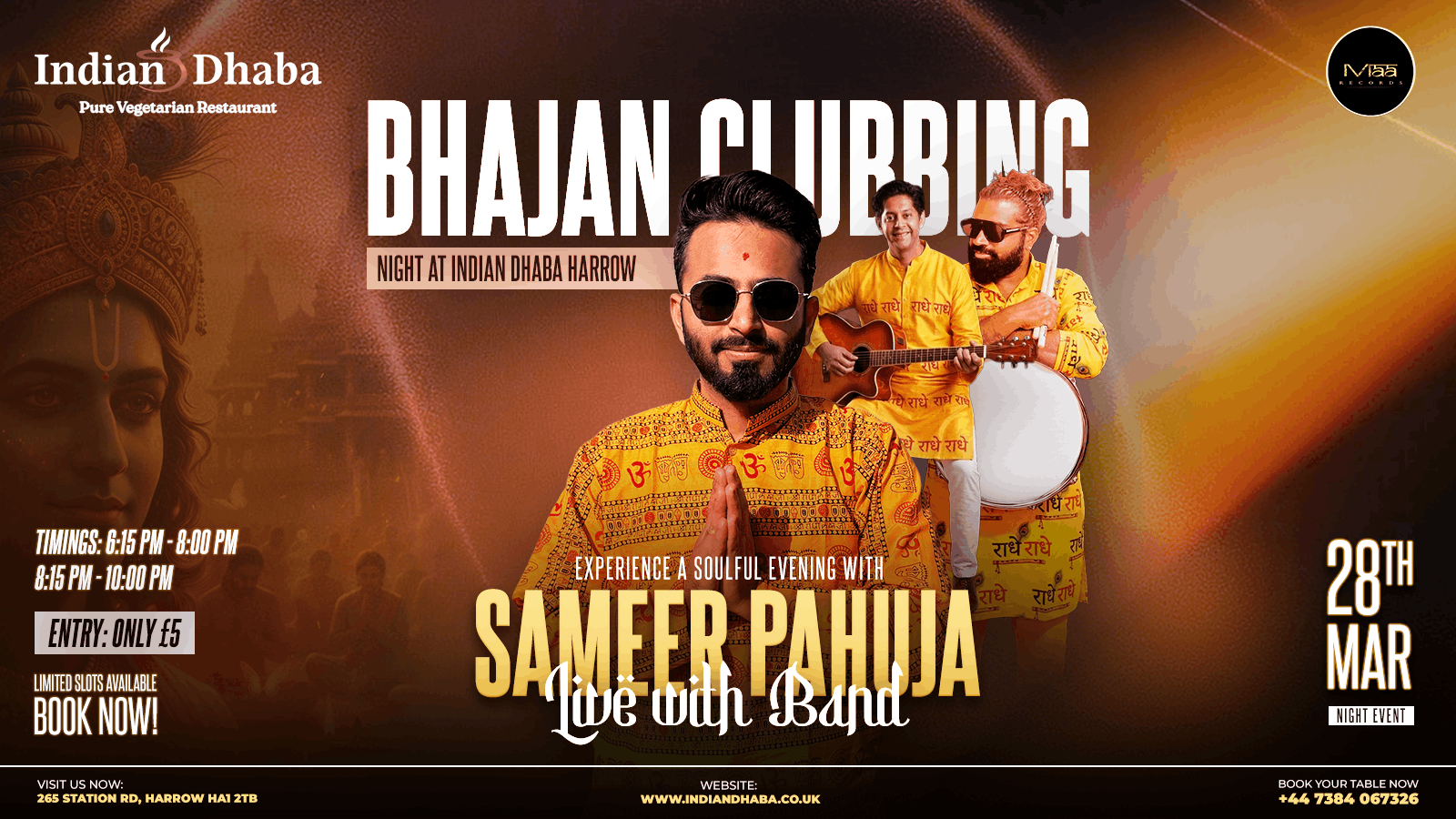 Experience a beautiful night of live bhajans, spiritual singing, and positive energy as we come together to celebrate faith and togetherness. Whether you love devotional music or simply want to enjoy a peaceful and uplifting evening, this event is perfect for everyone.