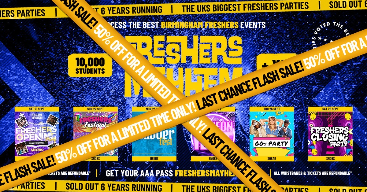 The Freshers Mayhem AAA is the cheapest and best way to secure your entry at Birmingham's biggest freshers' parties this September. 🎟