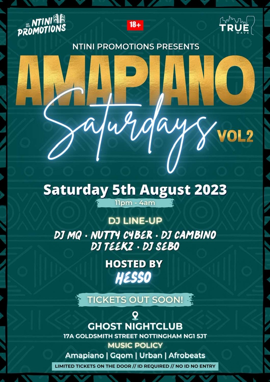 Bringing you the best Amapiano club night in Nottingham, with an all star line up of DJs playing the best of Amapiano, Gqom, Urban and Afrobeats 🔥