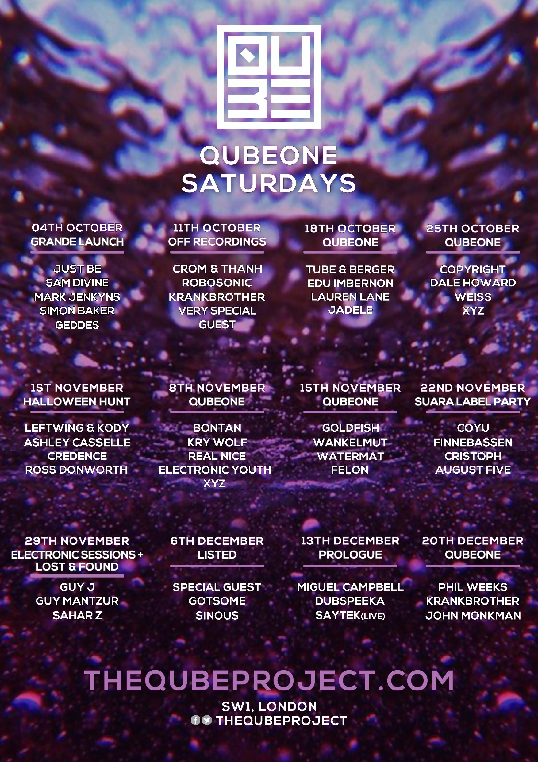 October 18 / QubeOne: Tube & Berger / Edu Imbernon / Lauren Lane / Jadele / more TBA