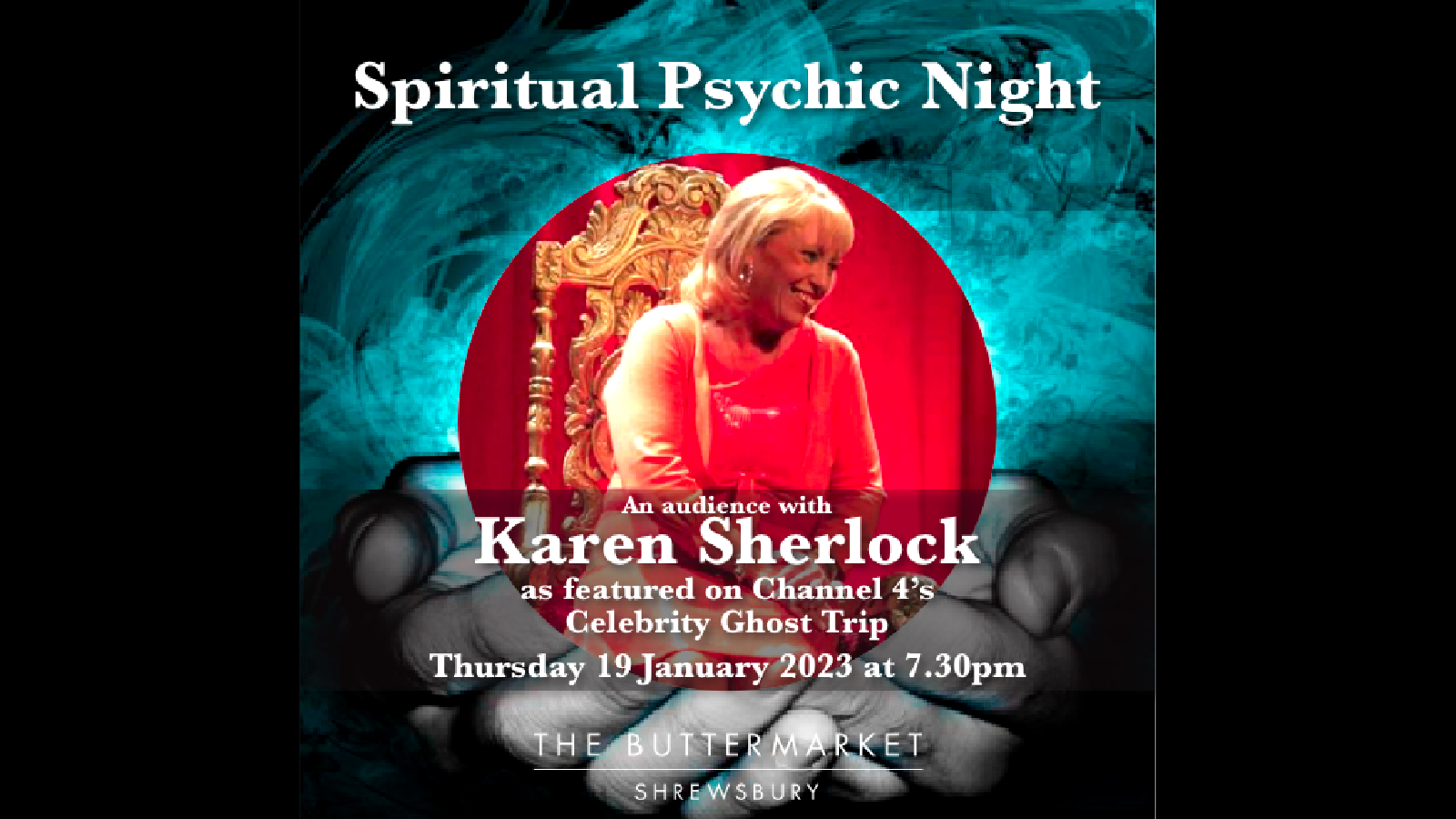In 2021 , Karen Sherlock featured on Channel 4's TV show 'Celebrity Ghost Trip' - and on Thursday 16 February 2023 she will return to Shrewsbury - after a sold out evening at The Buttermarket earlier this year - for a special Spirit mediumship readings evening where she will connect to past loved ones and pass on any messages they have for audience members.