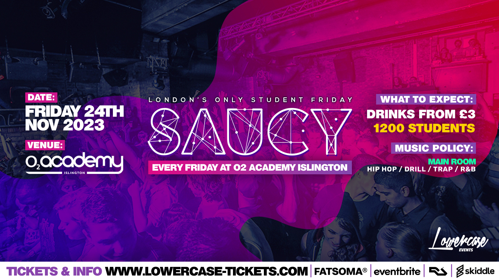 SAUCY is on EVERY FRIDAY until 4AM at O2 Academy Islington!!