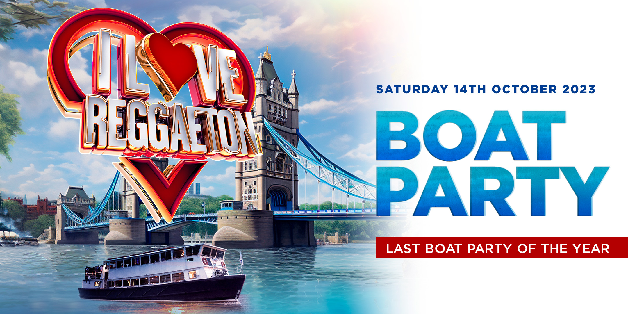 UK's Biggest Reggaeton Party has hosted 21 incredible SOLD OUT Boat Parties! We are now back with another amazing Boat Party on Saturday 14th October 2023 - DANCE, DRINK & PARTY WHILST PASSING ALL OF LONDON'S ICONIC SITES ALONG THE THAMES!