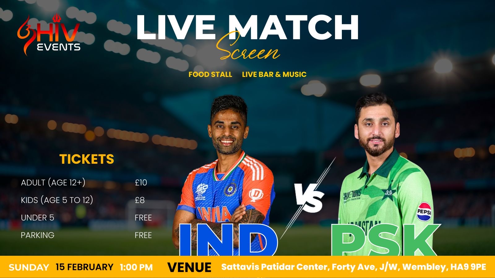 Whether you’re cheering for Team India or Team Pakistan, this event is all about passion, sportsmanship, and shared excitement. Come with friends, wear your team colors, enjoy great food and drinks, and be part of a thrilling cricket night you won’t forget.