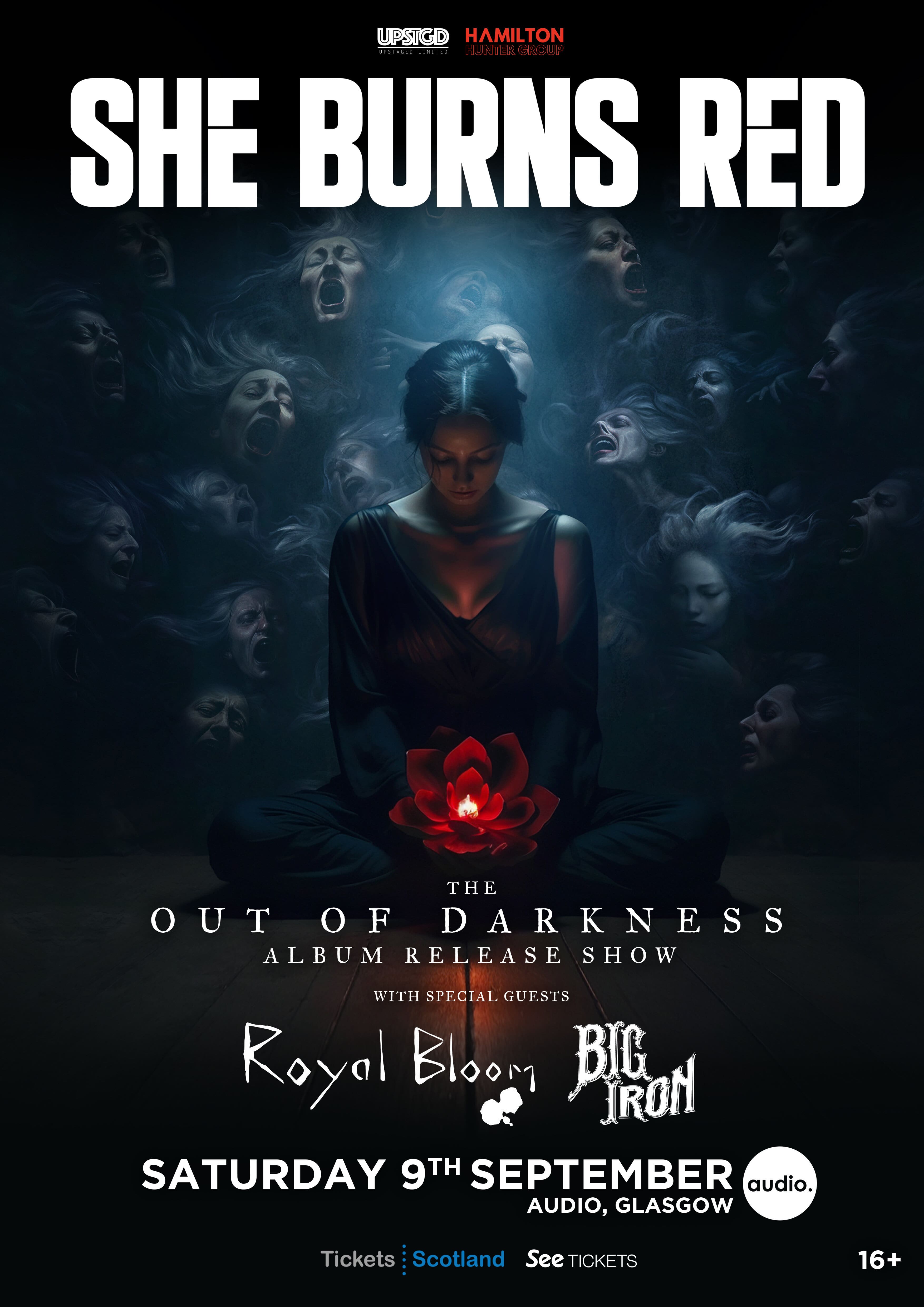 Scottish Hard Rock band, She Burns Red headline Audio, Glasgow for their album release show for upcoming album 'Out Of Darkness'. The Edinburgh-based, four-piece has been busy booking festival slots up for the year and also snatching some notable support slots, but make no mistake, this is She Burns Red's night to shine and show you what they've worked so hard on over the last few years in a heavy display of hard rock. Support comes from Royal Bloom and Big Iron.