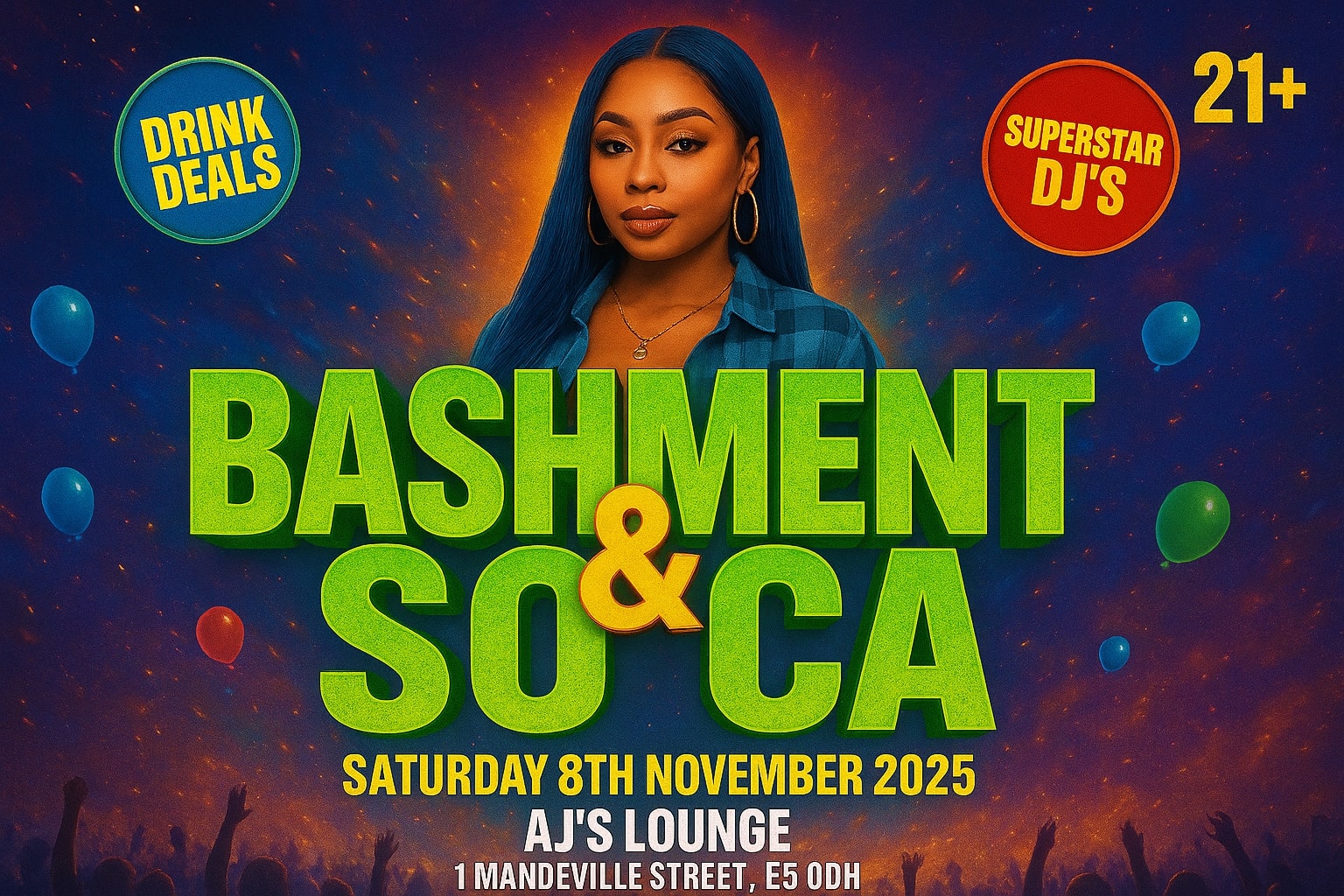 Get ready to shell down the city! Bashment & Soca is taking over AJ’s Lounge this Saturday, 8th November 2025, bringing the ultimate Caribbean energy straight to East London. Expect nothing but non-stop riddims, epic drink deals, and superstar DJs shelling out the hottest Bashment, Soca, Dancehall, Afrobeats, and Urban anthems all night long.
