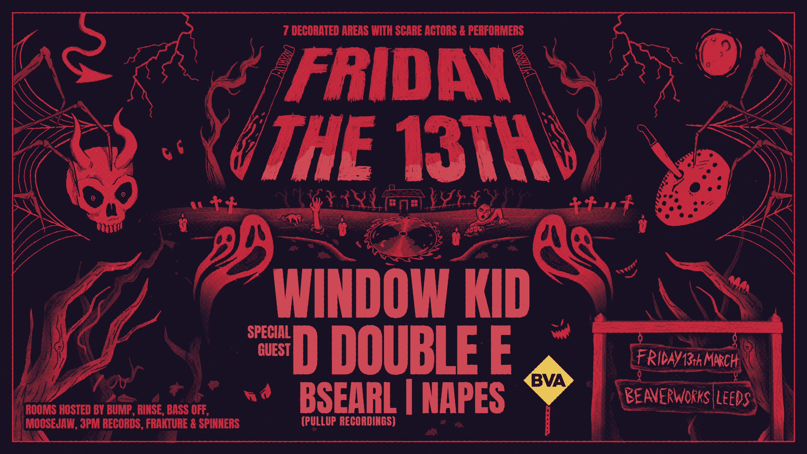 Rooms hosted by BUMP, RINSE, BASS OFF, 3PM RECORDS, MOOSEJAW, SPINNERS & FRAKTURE.