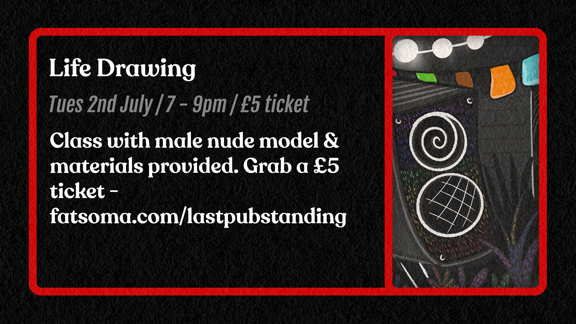 This will be in our lovely upstairs bar. Materials are provided as well as a nude male model. This event is 18+.