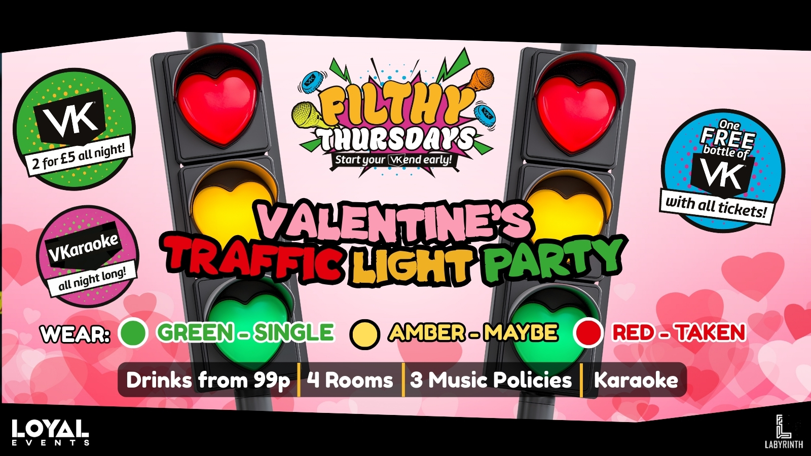 Filthy Thursdays - VALENTINE'S TRAFFIC LIGHT PARTY - FREE VK with tickets! - Start your VK'end early! - VKaraoke - Drinks from 99p!