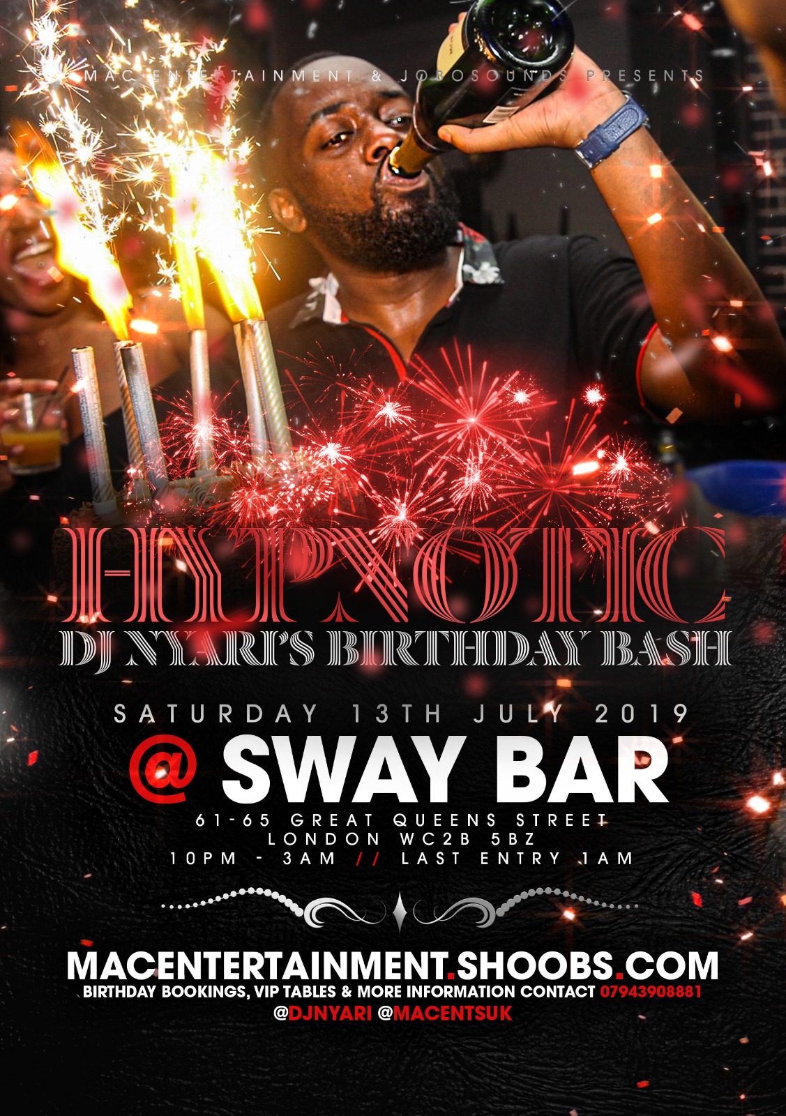 STRICTLY NO I.D NO ENTRY LAST ENTRY 1AM BIRTHDAY BOOKINGS , VIP TABLES & MORE INFORMATION CONTACT 07943908881 @DJNYARI @MACENTSUK