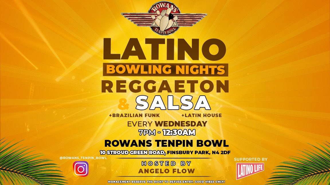 Join the ultimate Latin party experience at Rowans Latino Bowling Nights in the heart of North London. Hosted at Rowans Tenpin Bowl in Finsbury Park. Prepare to ignite the dance floor with sizzling Latin beats, indulge in festive games, and revel in a night of unbridled celebration.