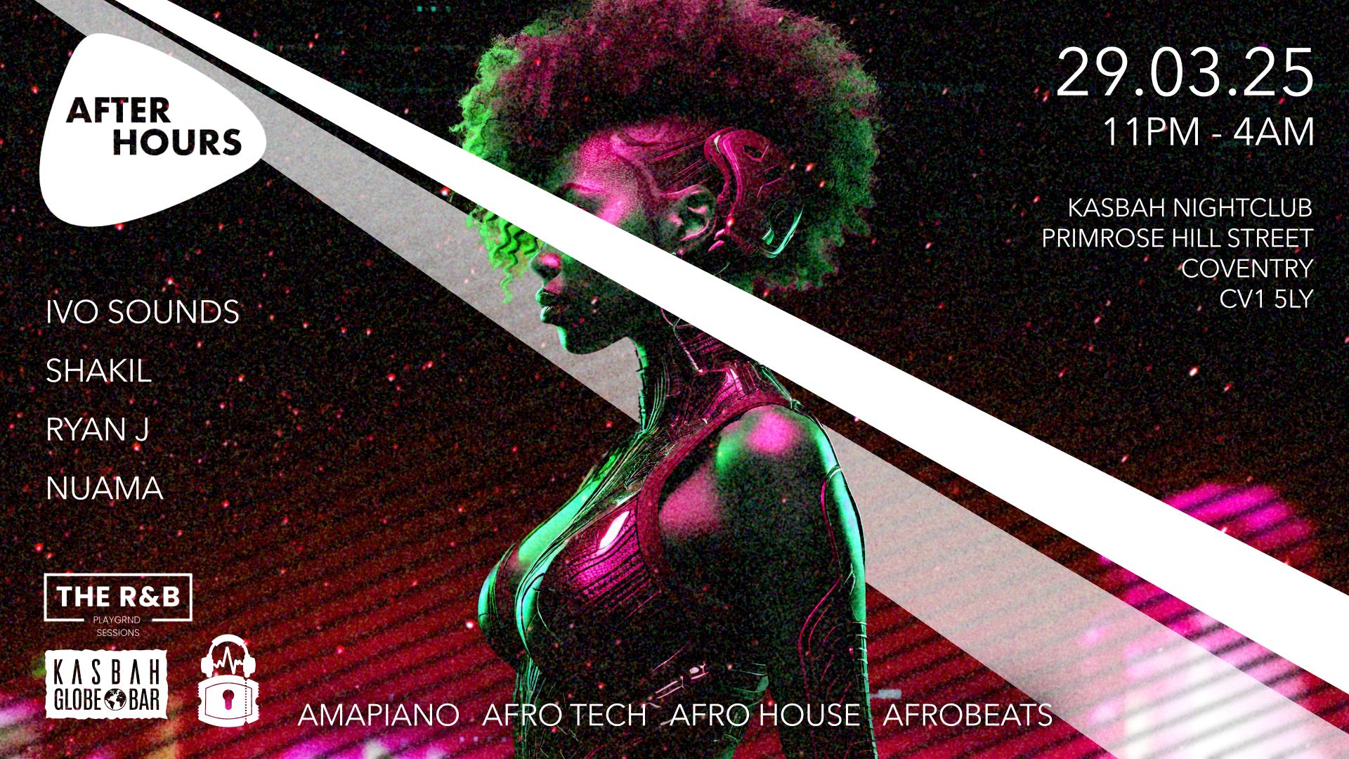 This is one for the culture. Don’t miss out—grab your tickets now! #AfterHours #KasbahCoventry #Afrobeats #Amapiano #AfroTech #AfroHouse