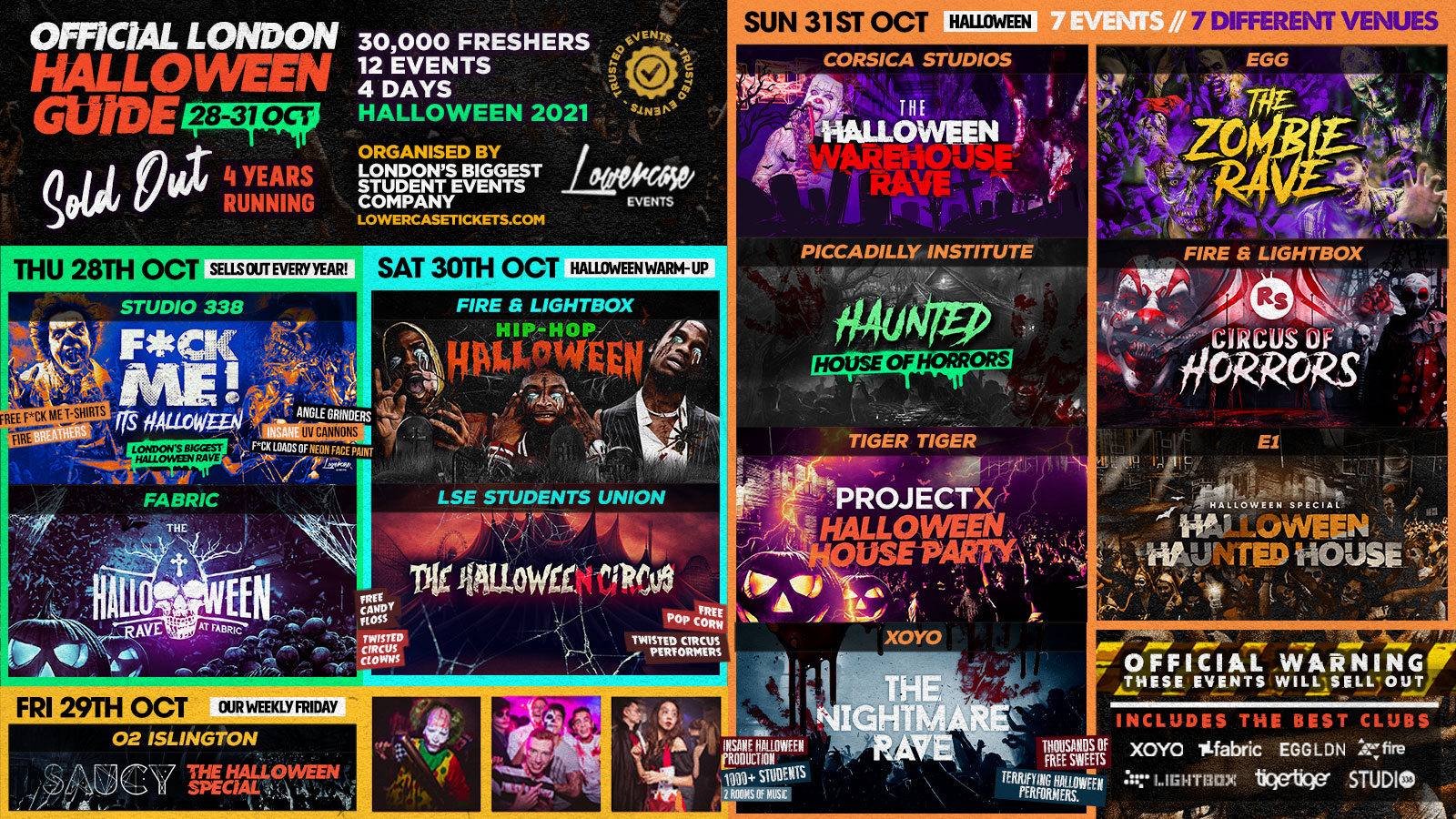 Every Halloween Lowercase Events London put on the BEST Halloween events & the BIGGEST clubs across London.