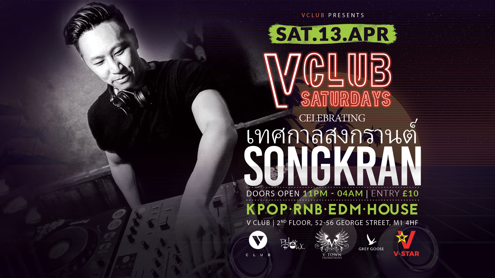 VClub presents a Spectacular night set to celebrate Songkran เทศกาลสงกรานต์, come celebrate the Thai New Year filled with KPOP, EDM, HOUSE & TRAP This will be no ordinary night, party in style at the newest premium club Manchester has to offer and expect the very best in music and entertainment a night like no other!!