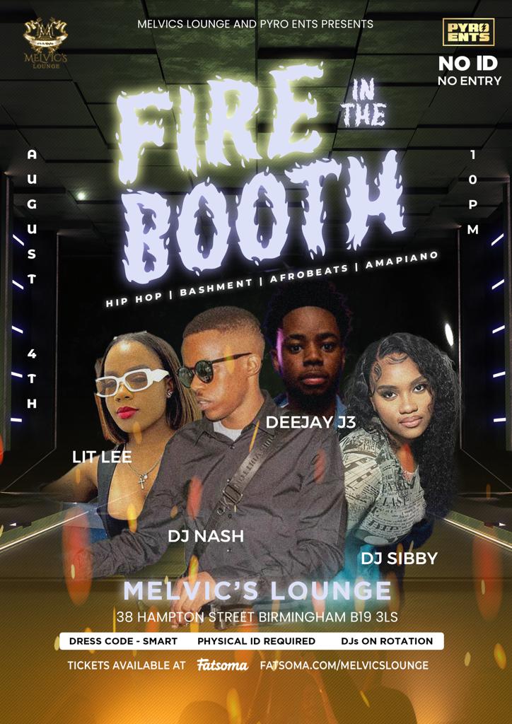 Bringing you the baddest Hip hop, bashment, amapiano & afro beats DJs to Melvics lounge. Fire in the booth is about showcasing artists skills, technique & talent.
