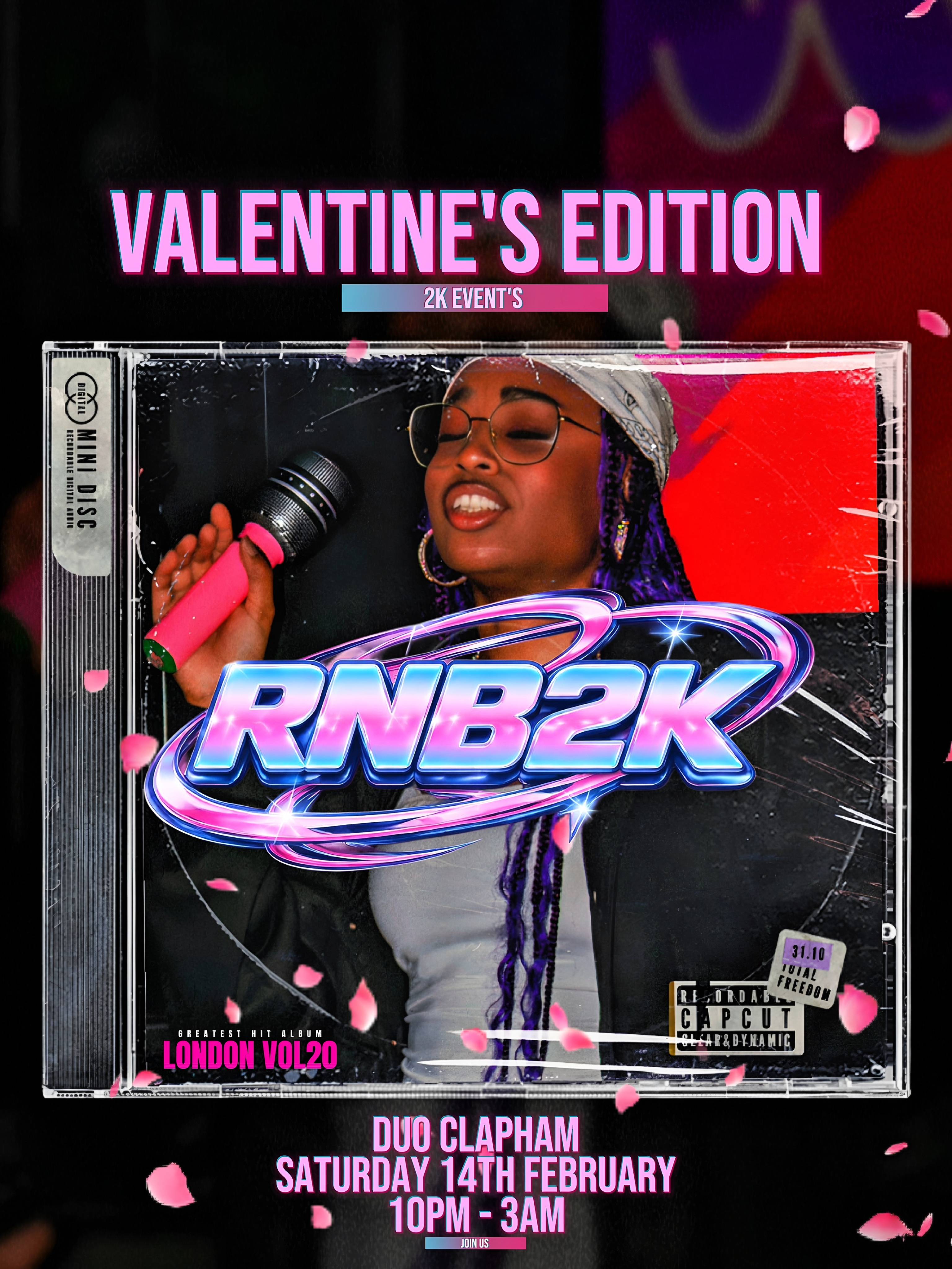 LONDON! We are heading to the heart of South West for a special Valentine’s Edition of RNB2K! We’re taking over the sleek and stylish @duolondon for a night of pure nostalgia and heavyweight R&B.