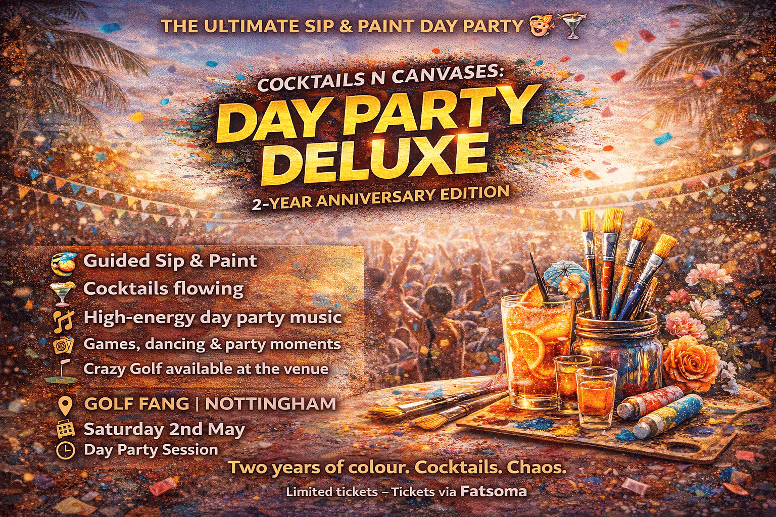 To celebrate turning 2, Cocktails N Canvases is going bigger, brighter and louder with Day Party Deluxe – a full-energy daytime sip & paint experience designed to feel like a party from the moment you walk in.