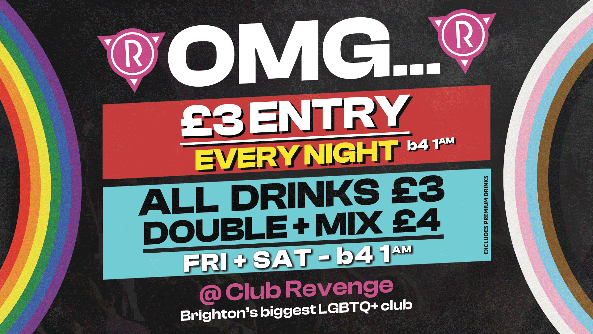All you have to do is show us on the door that you’re following @revengebrighton on any social media platforms.