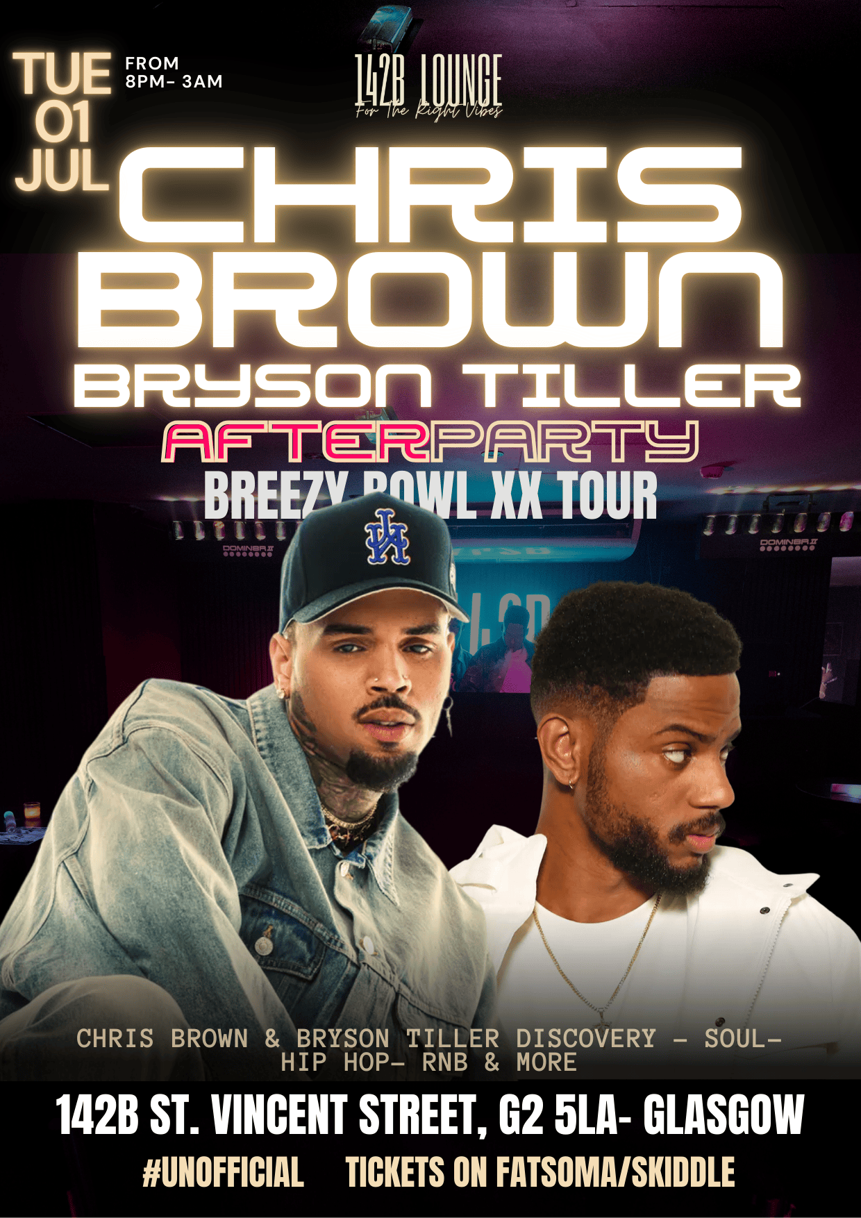 Yo, Glasgow! 🌍🎉 Ready to keep the party going after Chris Brown and Bryson Tiller’s epic night at Hampden Park? Join us for the Official Afterparty at 142B Lounge—it's gonna be a night to remember! 🚀🔥