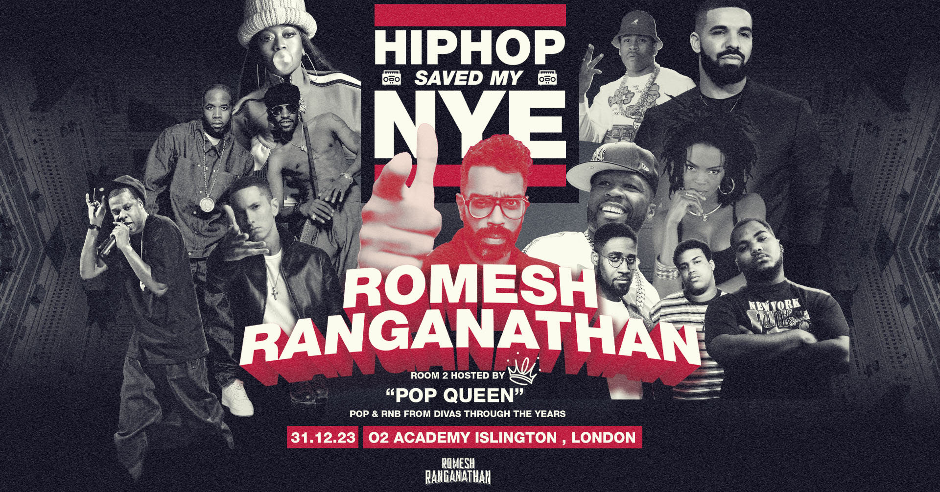 Yes for one night only (in 2023 anyway), award winning comedian Romesh Ranganathan will be hosting his FOURTH HipHop Fancy Dress Party; an ode to his HHSML Podcast on the wildest night in your calendar.. NEW YEARS BLINKIN EVE! (You don't actually need to dress up if you don't want to)