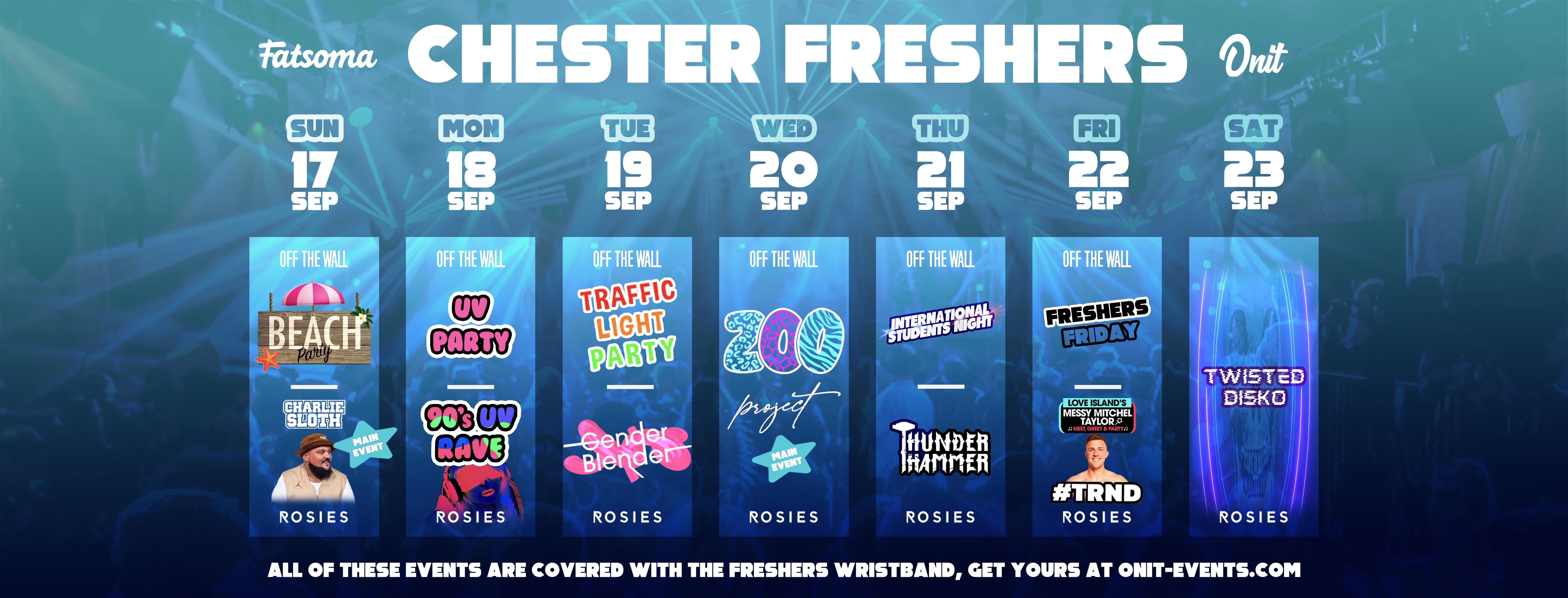 Get ready for the BIGGEST Saturday night in Chester and use your Freshers wristband for FREE entry to Rosies before 11pm!!!