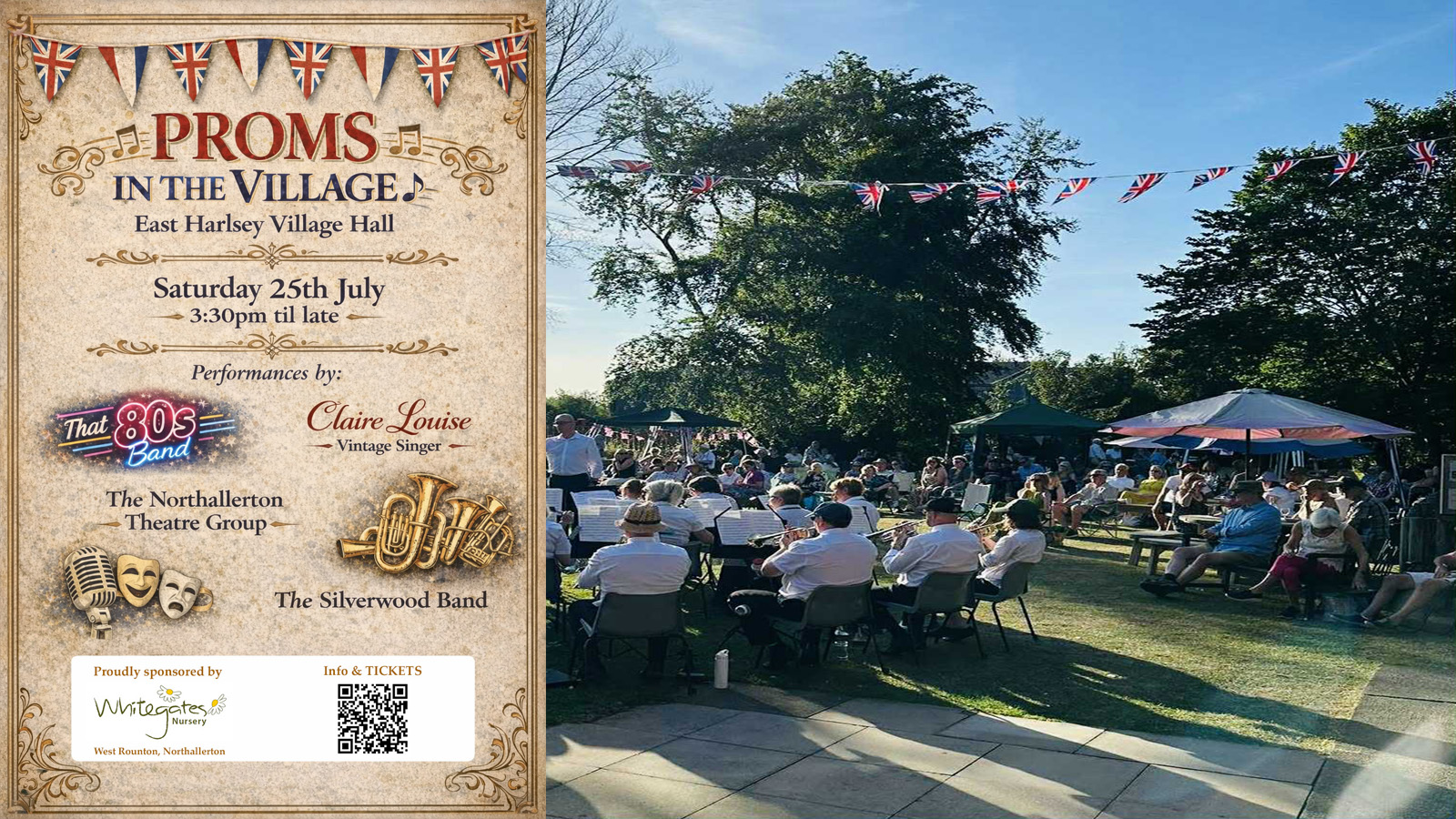 Welcome to East Harlsey's third annual 'PROMS IN THE VILLAGE' event. This year promises to be bigger and better than last, with performances from THAT 80s BAND, vintage singer CLAIRE LOUISE, THE NORTHALLERTON THEATRE GROUP, performing songs from their 'Showstoppers' repertoire, and a PROMs finale by THE SILVERWOOD BAND.