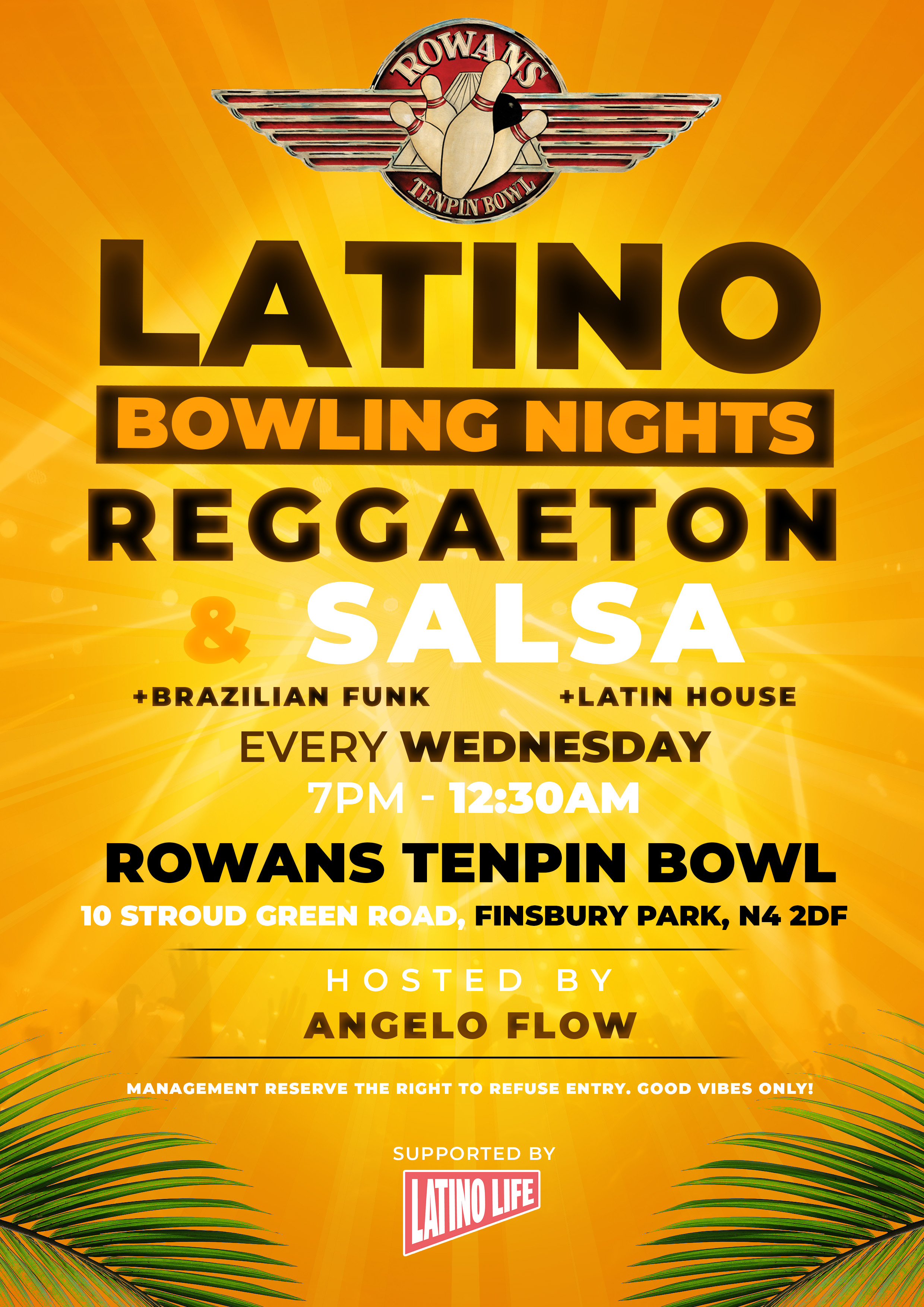 Join the ultimate Latin party experience at Rowans Latino Bowling Nights in the heart of North London. Hosted at Rowans Tenpin Bowl in Finsbury Park. Prepare to ignite the dance floor with sizzling Latin beats, indulge in festive games, and revel in a night of unbridled celebration.