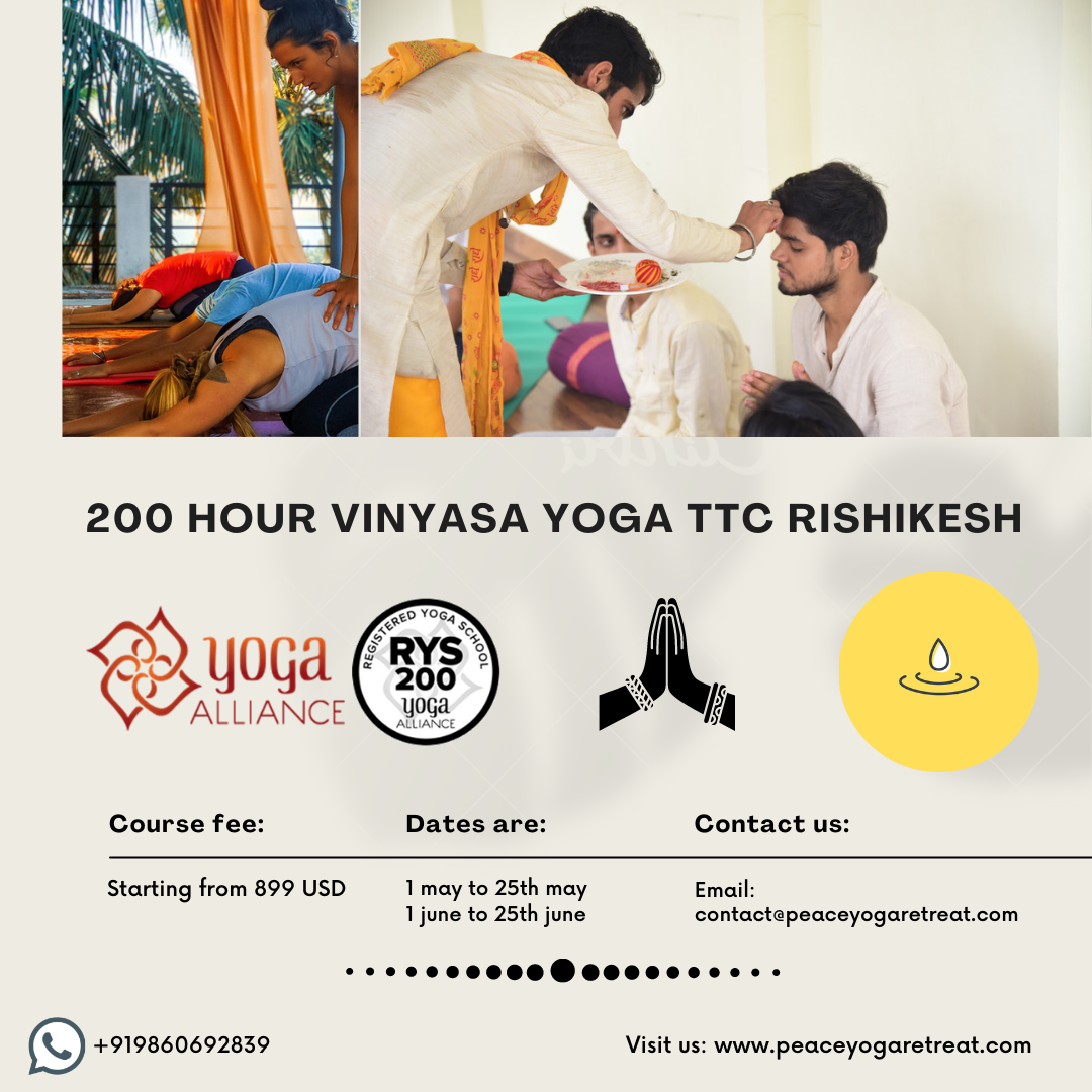 𝗥𝗲𝘀𝗶𝗱𝗲𝗻𝘁𝗶𝗮𝗹 (𝟮𝟱 𝗱𝗮𝘆𝘀) 200 hour Yoga Teacher Training in Rishikesh at Peace Yoga Retreat. Learn Yoga from Well Graduated and Knowledgeble Yoga Teachers of Rishikesh. The leading Yoga Teacher Training in Rishikesh, Certified with Yoga Alliance USA, and Yoga Alliance International.