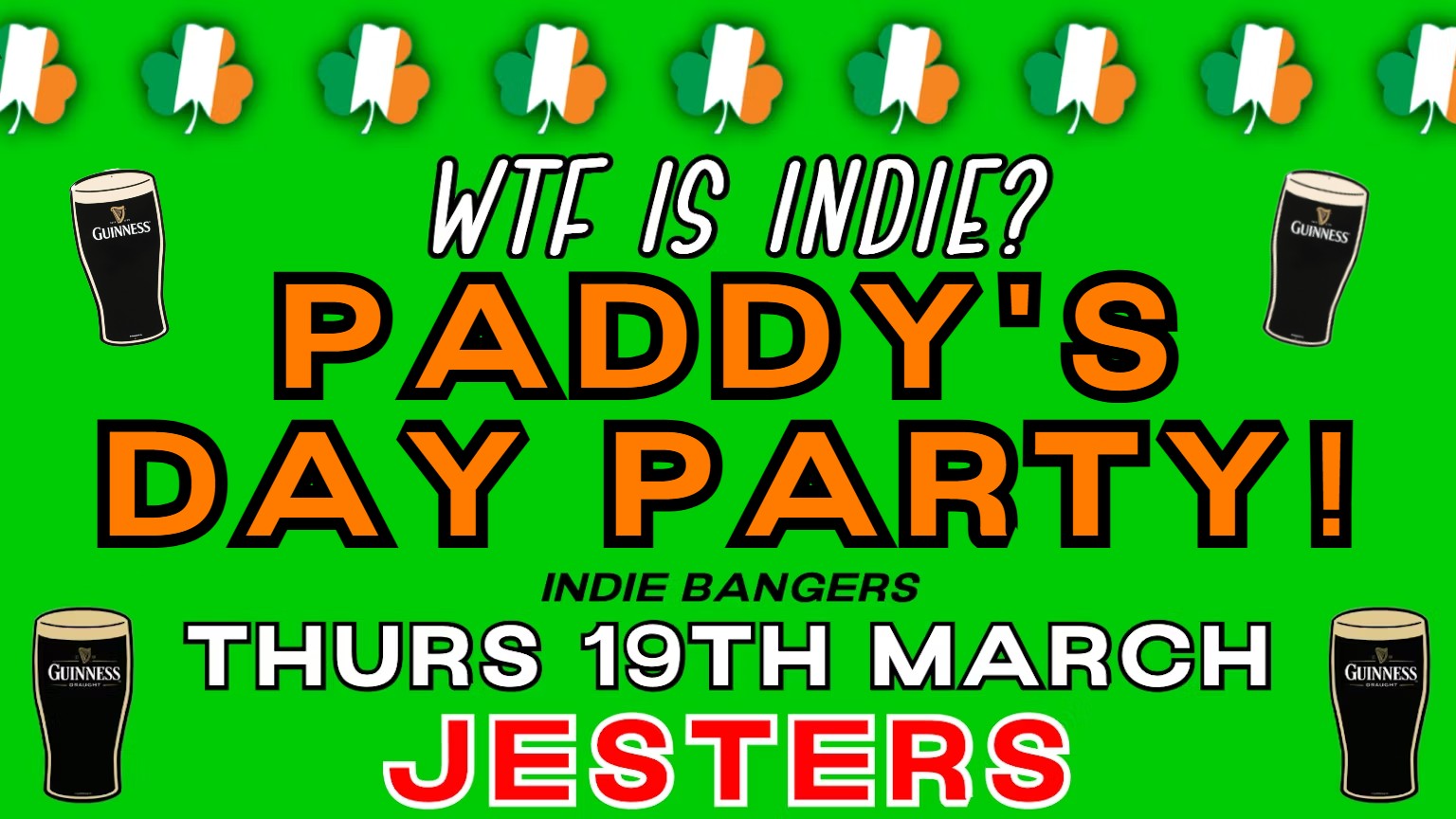 FOOKING YES NOW! READY FOR FOOKING HUNDREDS OF STUDENTS, BIBLICAL CHOONS AND BELTING VIBES? WTF IS INDIE IS HERE FOR YOU! 🍀🍀🍀