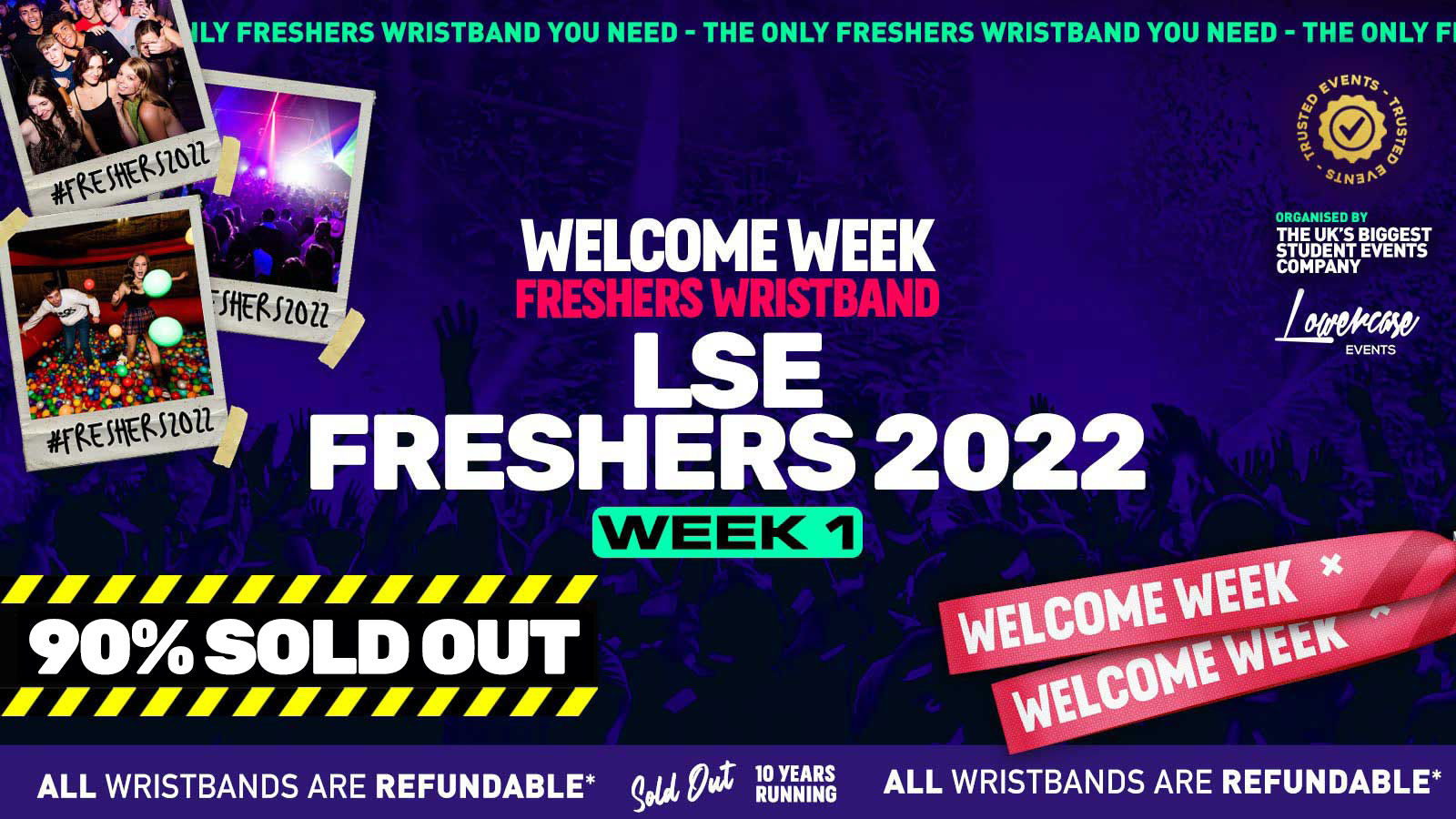 The Official London Freshers Wristband has SOLD OUT IN RECORD TIME every year for the last 10 years! Organised by the biggest & longest running student events company in London, Lowercase Events!